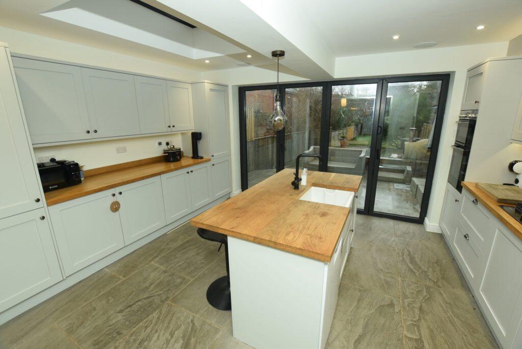 SUPER FOUR BEDROOM TOWN HOUSE, NORTON with NEW ROOF 2023, REWIRED, Lounge, Log Burner, Dining Room through to New Breakfast/Kitchen Diner. Bifold Doors to Private Rear Garden. WCs Ground Floor and Second Floor, New Family Bathroom First Floor. Central Heating, Most Double Glazed.