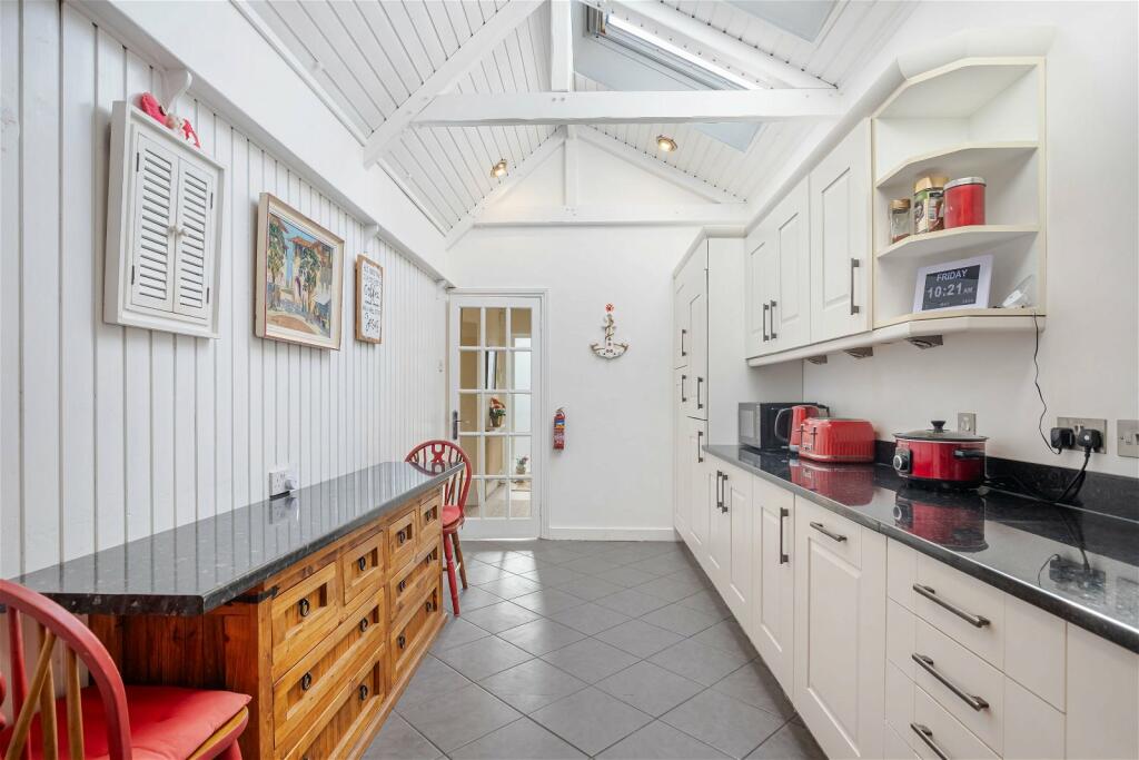 Inspired, south facing converted barn now providing spacious three double bedroom living with secure enclosed garden. Luxury kitchen, superb spacious drawing room. Beautiful Mediterranean style garden with off road parking.