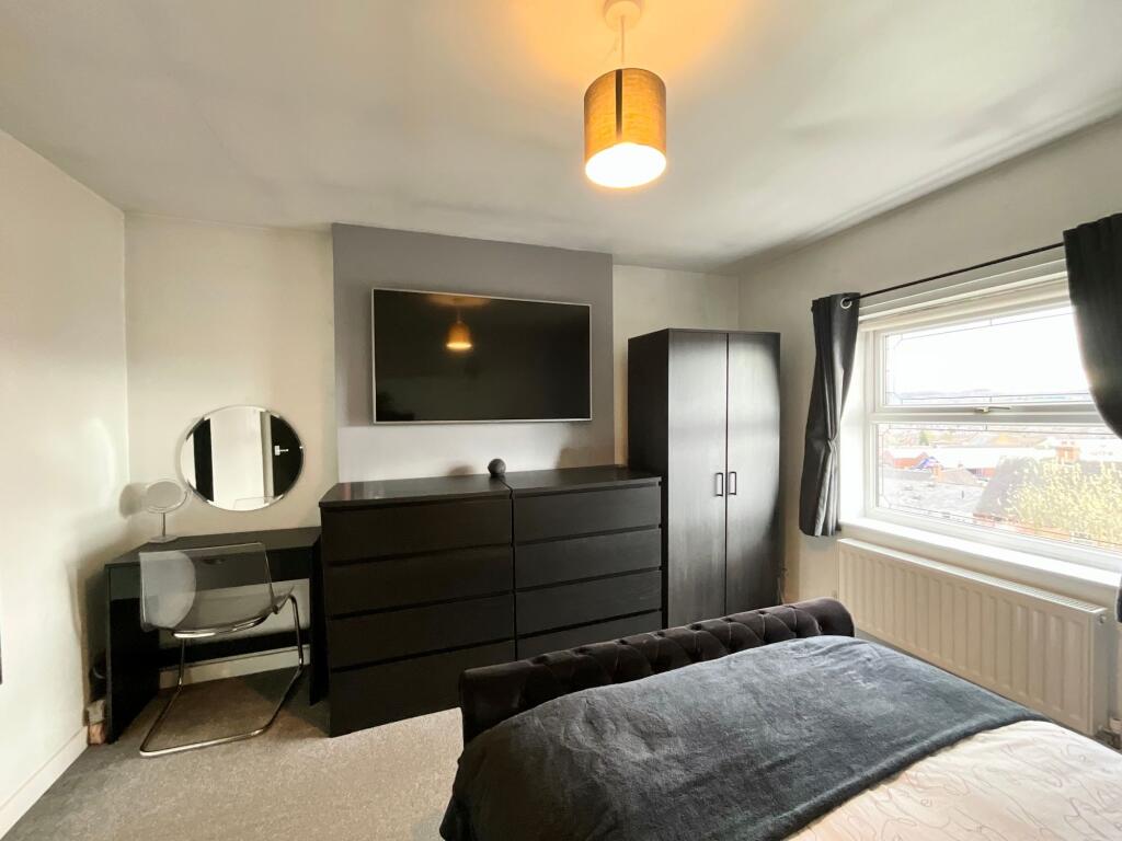 Two bedroom semi detached property with ample parking, modern kitchen and bathroom, stunning views over the Staffordshire countryside and only a few steps away from the High street in Cheadle.