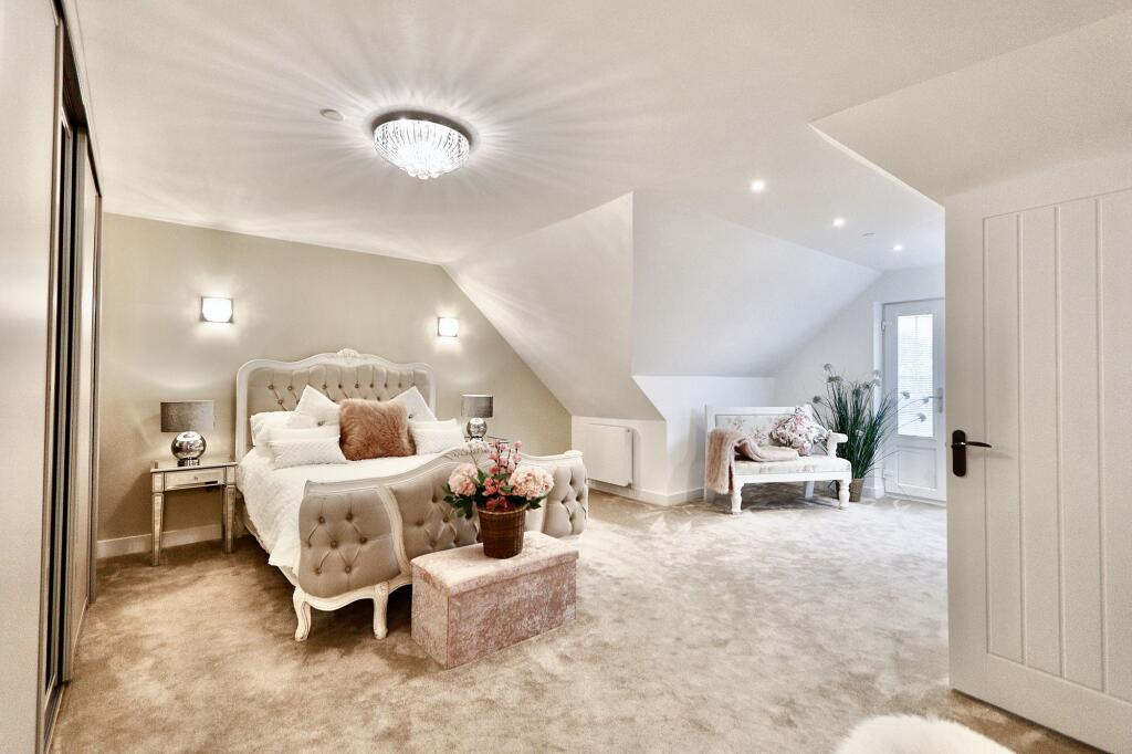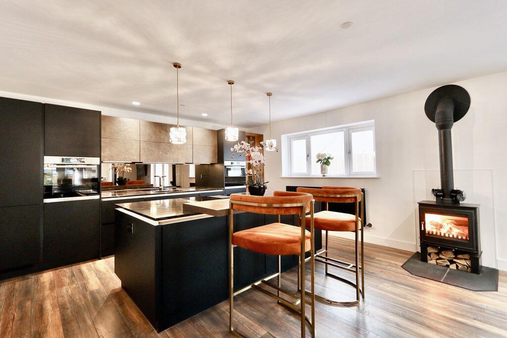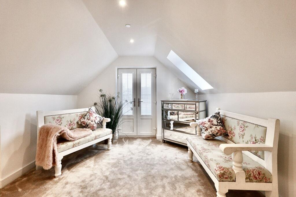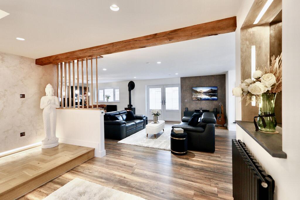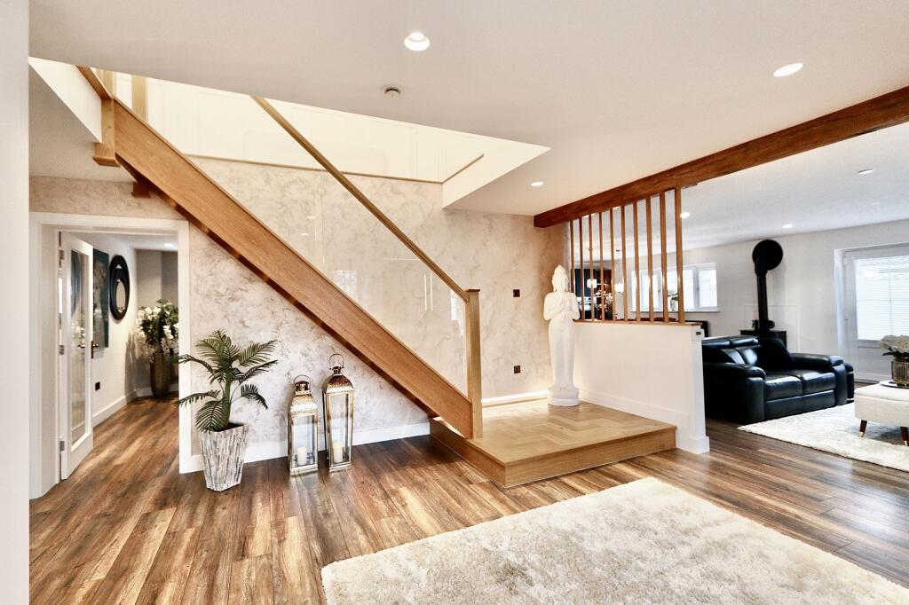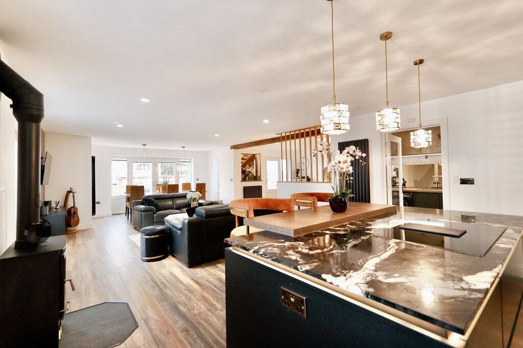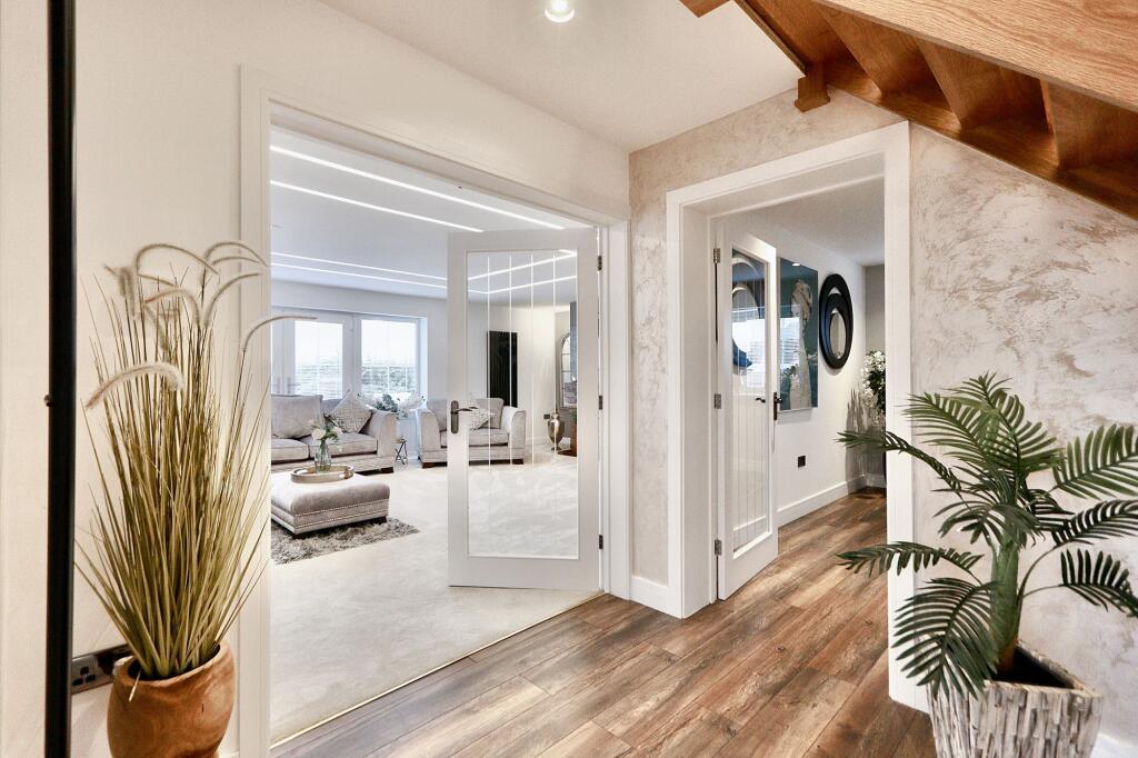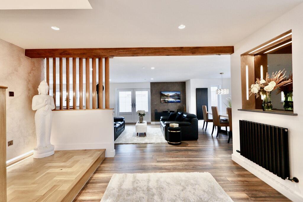 Stunning 3-bed detached house with valley views, private driveway, double garage. Open-plan kitchen/dining, cosy log burner, impressive reception room with fireplace, office, master suite with Juliette balcony, 2 double ensuite bedrooms. Elegant, secluded retreat - act fast!