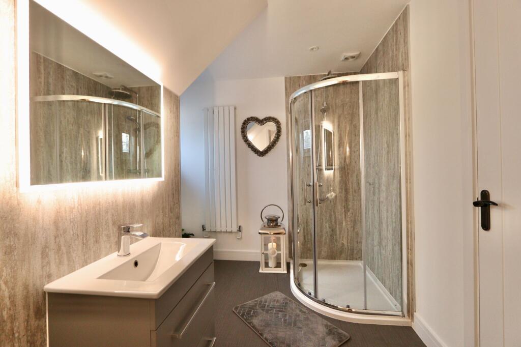 A detached property in Argoed, Caerphilly that has been renovated to a high standard. It features modern fixtures and fittings, a well-maintained garden, and a detached garage. The property is located near Markham Primary School and has good transportation links.