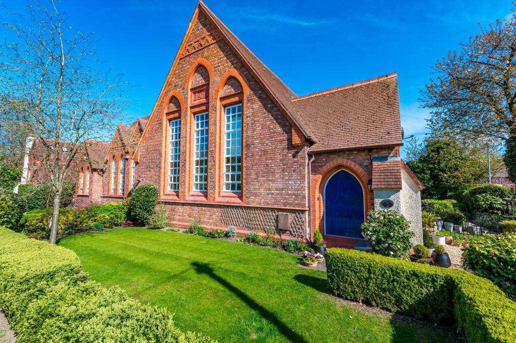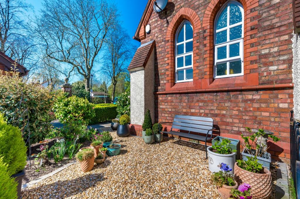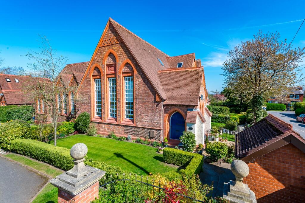 The property is a 2 bedroom, 1 bathroom mews house located in Culcheth, Warrington. It is a converted former schoolhouse, which gives it unique character. The property benefits from a well-maintained front garden.
