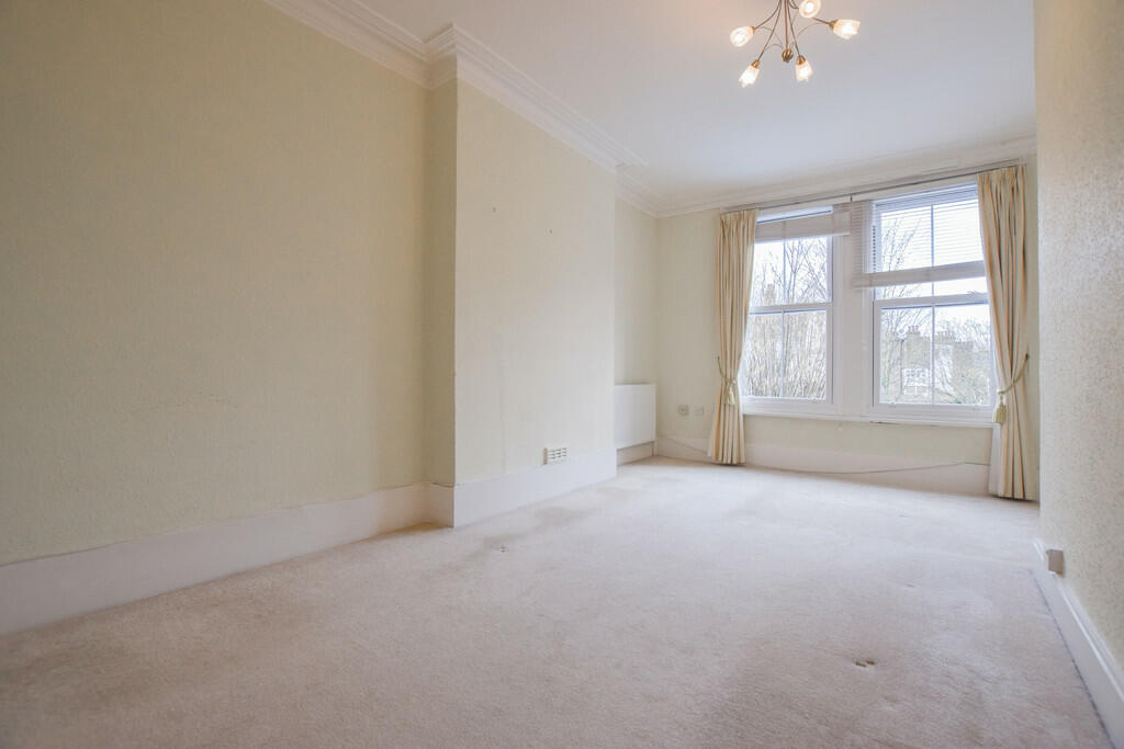 Spacious first floor one bedroom conversion flat. Large high-ceiling reception room overlooking parkland with separate well-fitted kitchen/breakfast room. Extremely large double bedroom, modern bathroom and separate WC. Unfurnished.