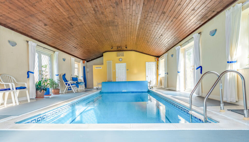 A stunning, privately located home set within 1.6 acres of mature gardens, offering exceptional accommodation, extensive parking, a detached annexe and an indoor swimming pool… • An impressive detached home, extended and remodelled to a high standard, with flexible living space. • Expansive op...