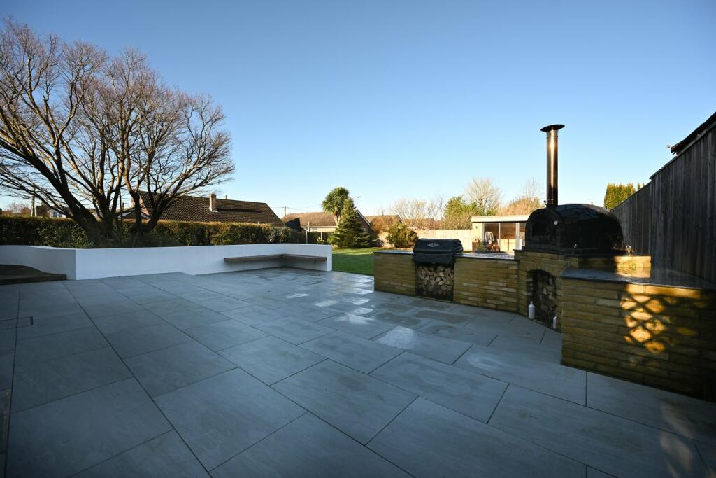 The property is a 4-bedroom, 2-bathroom detached house with a sizeable plot of 2,945.80 sqft. The photos reveal a recently renovated home presented to a high standard. The interior boasts modern finishes, including a stylish kitchen, open-plan living spaces, and updated bathrooms. The exterior features a well-maintained garden, a patio area, and an outdoor kitchen with a pizza oven and grill. The property’s location in Ringwood places it within the catchment area of several schools rated ‘Good’ by Ofsted, suggesting a family-friendly environment. While specific transportation details are lacking, the proximity to Ringwood town centre implies reasonable access to amenities and services. The list price of £875,000 requires further context for a complete price analysis. Information on average prices per square foot in the immediate vicinity is missing, preventing a direct comparison to determine the property’s value. However, considering the property’s size, condition, features, and location within Ringwood, the price appears to be in line with the market for similar high-end properties in desirable areas. The lack of average price per sqft data makes a definitive statement on price value impossible. More data is needed to confirm if this property represents good value for money.
