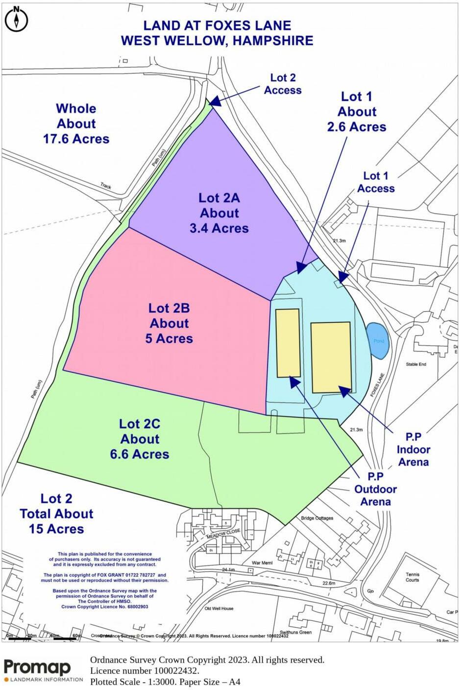 Established level pasture with equestrian use. Good vehicular access situated within the Test Valley. Further 8.4 Acres of pasture and 3.6 acres with Planning in perpetuity available by separate negotiation. LOT 2C - Total about 5.1 acres