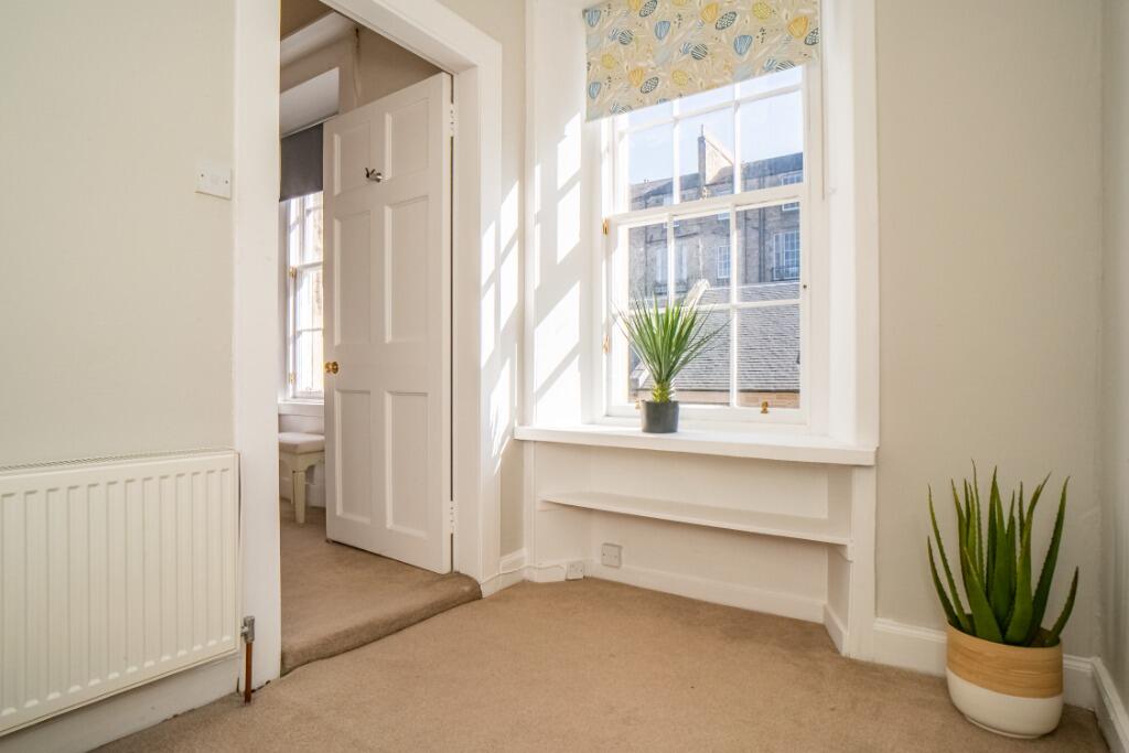 Excellent opportunity to acquire this bright, spacious and centrally located flat situated in one of the New Town's most sought after streets. The freshly decorated first floor accommodation offers many period features including; ornate cornice work, sash and case windows and working shutters....