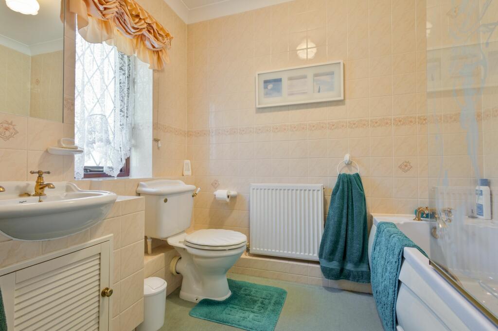 The property appears to be in good condition based on the provided images. The interior is well-maintained and presented, with modern fixtures and fittings in some areas, and more traditional features in others. There is no visible evidence of significant repair or renovation needs. The exterior is also well-maintained, with a neat garden and landscaping.