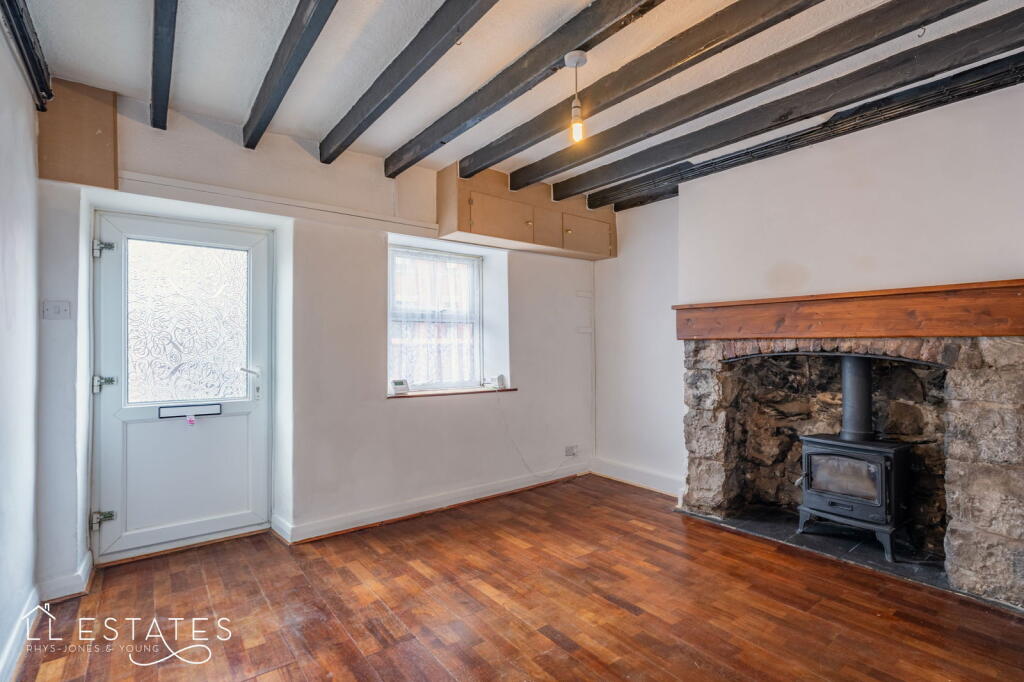 Well-presented 1-bed terraced home in the heart of Rhuddlan. Features original beams, log burner, modern kitchen, spacious garden with castle views, and updated bathroom. Ideal for first-time buyers or downsizers. No chain – move straight in.