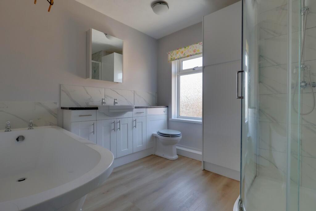 This is a two-bedroom terraced house in Havant, Hampshire. The property is listed with Pearsons estate agents for £325,000. The house features a modern bathroom and a conservatory that leads to a good-sized garden. While the kitchen appears dated, the property’s location offers convenient access to schools and transportation, including the Havant train station. The property could benefit from some modernisation.