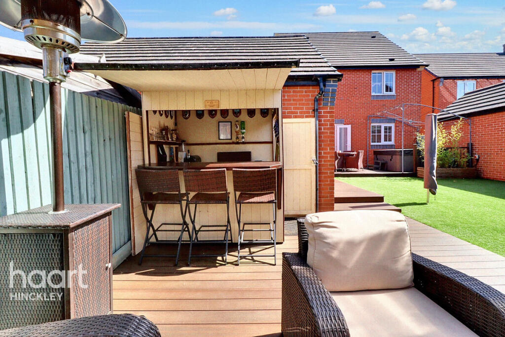 The property is located in Burbage, which is close to Hinckley. Hinckley has a train station with links to Leicester and Birmingham. There are also a number of schools in the area, including Sketchley School which is rated ‘Good’ by Ofsted and is less than 1km from the property. This suggests that the location is convenient for families and commuters. Based on the images provided, the property appears to be in excellent condition. It is modern, clean, and well-maintained. There are no visible signs of damage or disrepair. The property has a garden with artificial turf and a decked area. There is also a brick built shed/outbuilding and a wooden summer house/bar. This suggests that the property has a good amount of outdoor space. The list price of £380,000 is slightly below the average price for the area (£422,799). However, the property is smaller than the average property in the area (838.84 sqft vs 1,137 sqft). The average price per sqft in the area is £371. Based on this, the property’s price per sqft is approximately £454, which is higher than the average. However, given the excellent condition of the property and the additional outdoor space, the list price may still represent good value for money.