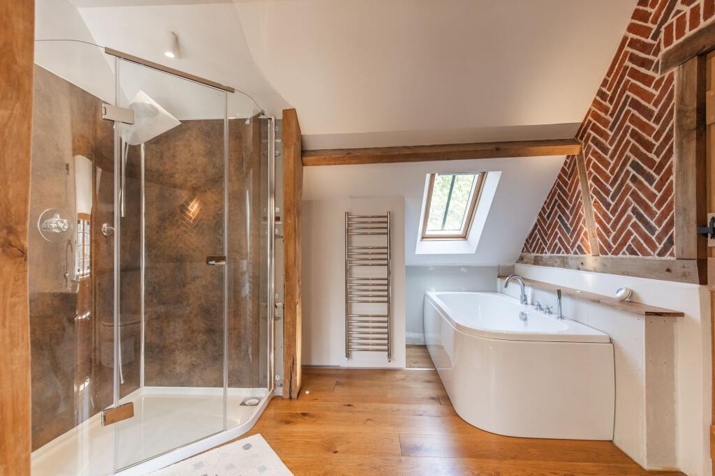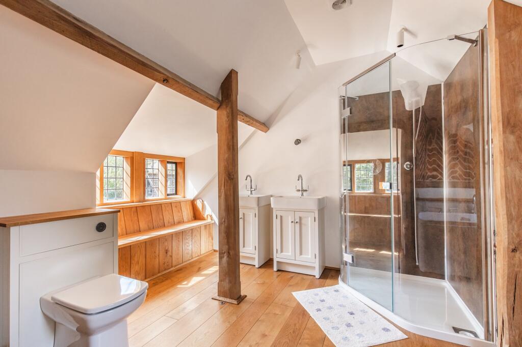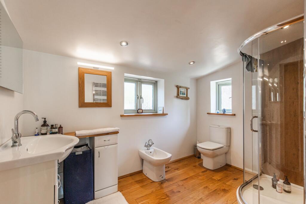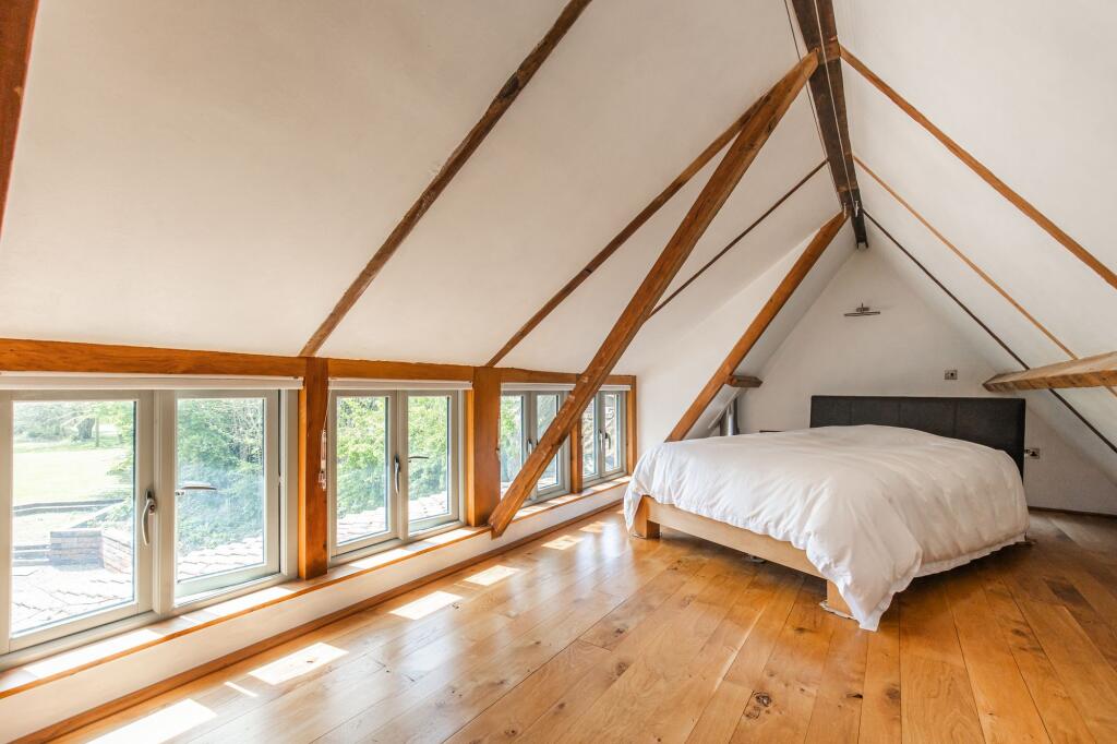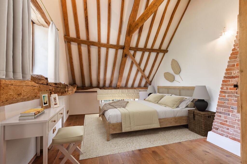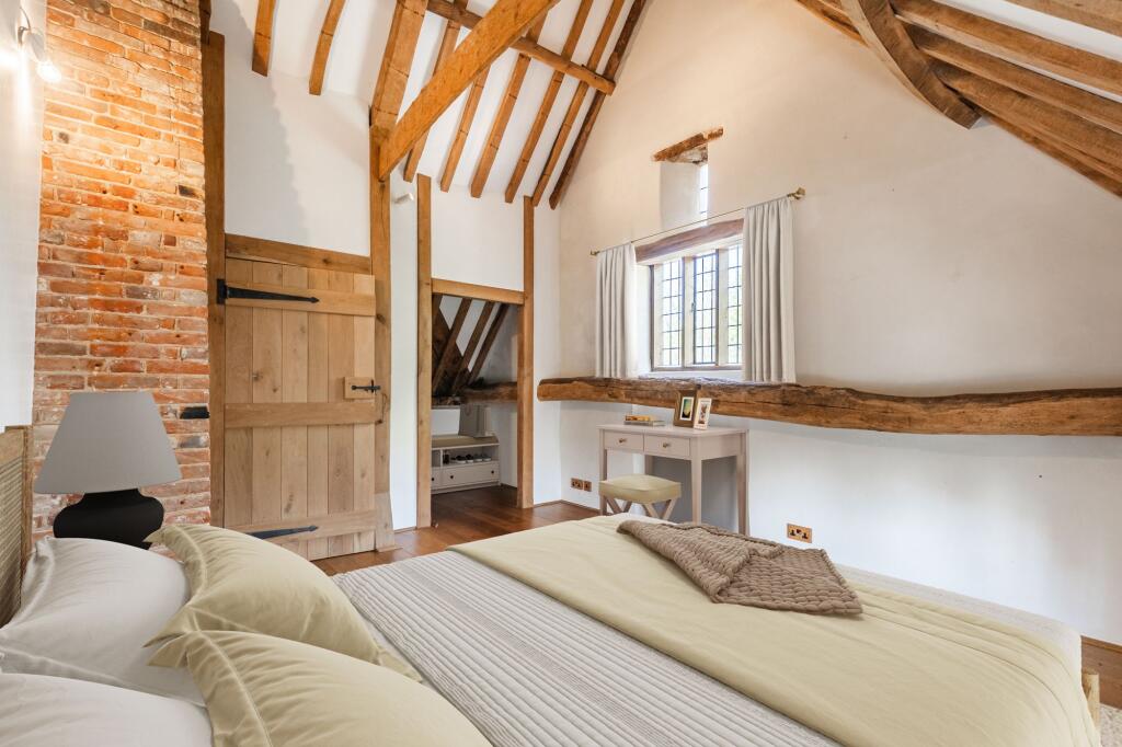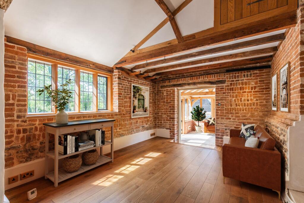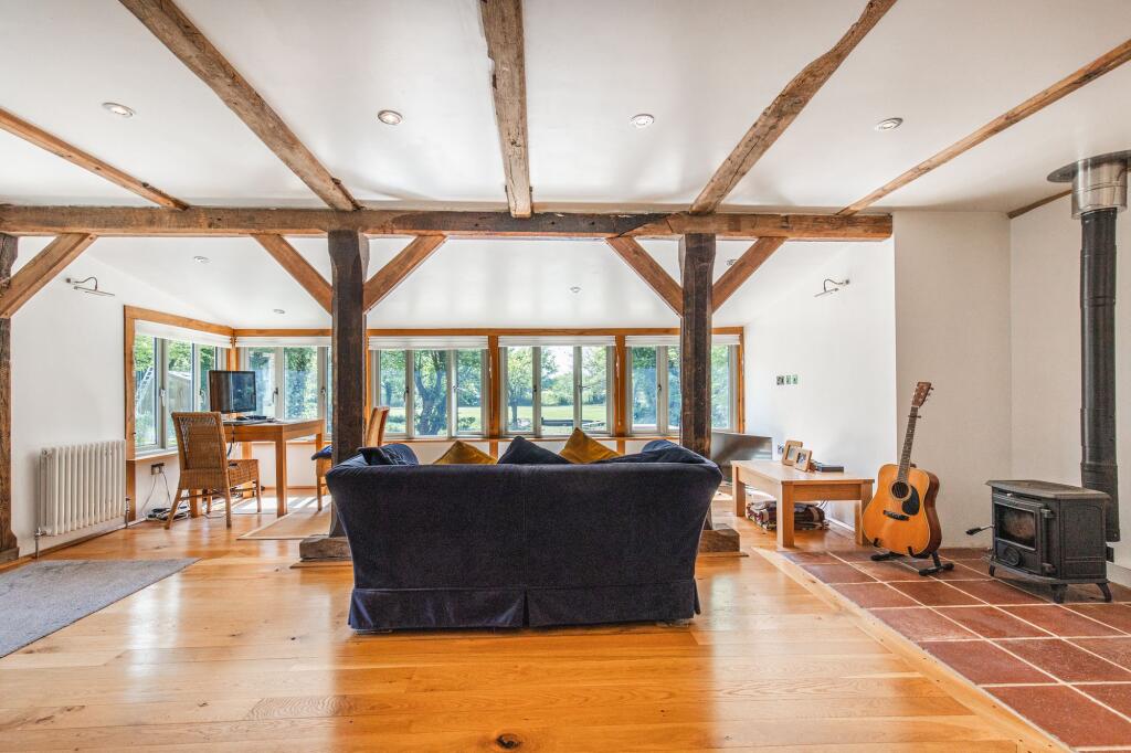 GUIDE PRICE £1,000,000 - £1,100,000. A stunning five bedroom character barn boasting impeccably renovated interiors, renovated to the most exacting of standards. Ground floor bedrooms, a detached cottage annexe and an enchanting plot of 0.75 acres (STS) make this a unique home to cater for all ge...
