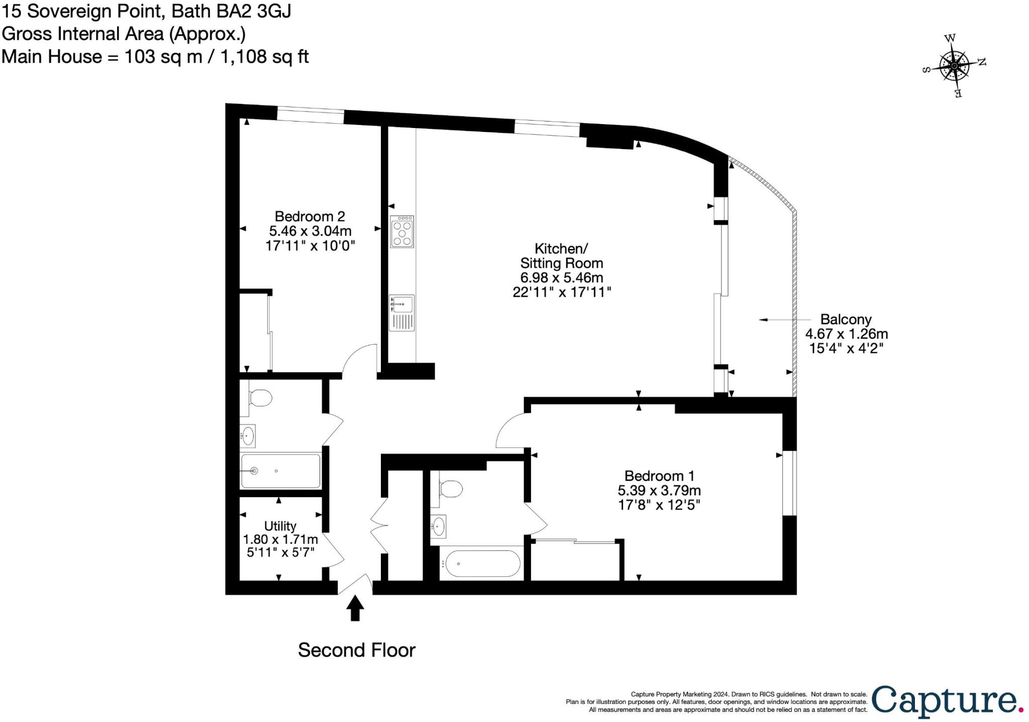 A well presented two bedroom, two bathroom apartment situated in Sovereign Point, on the Bath Riverside Development.