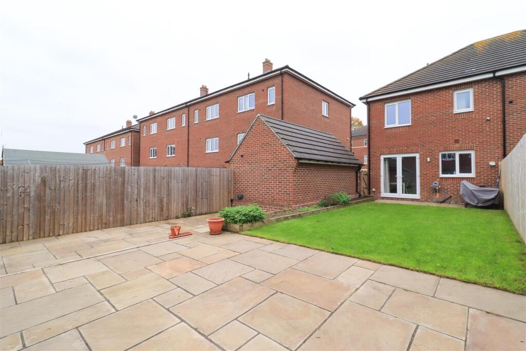 This STUNNING home, nestled within this charming development, boasts three bedrooms, a contemporary fitted kitchen, generous off road parking, complemented by a detached garage, and a beautifully LANDSCAPED enclosed rear garden. VIEWING ESSENTIAL. EPC rating B85.