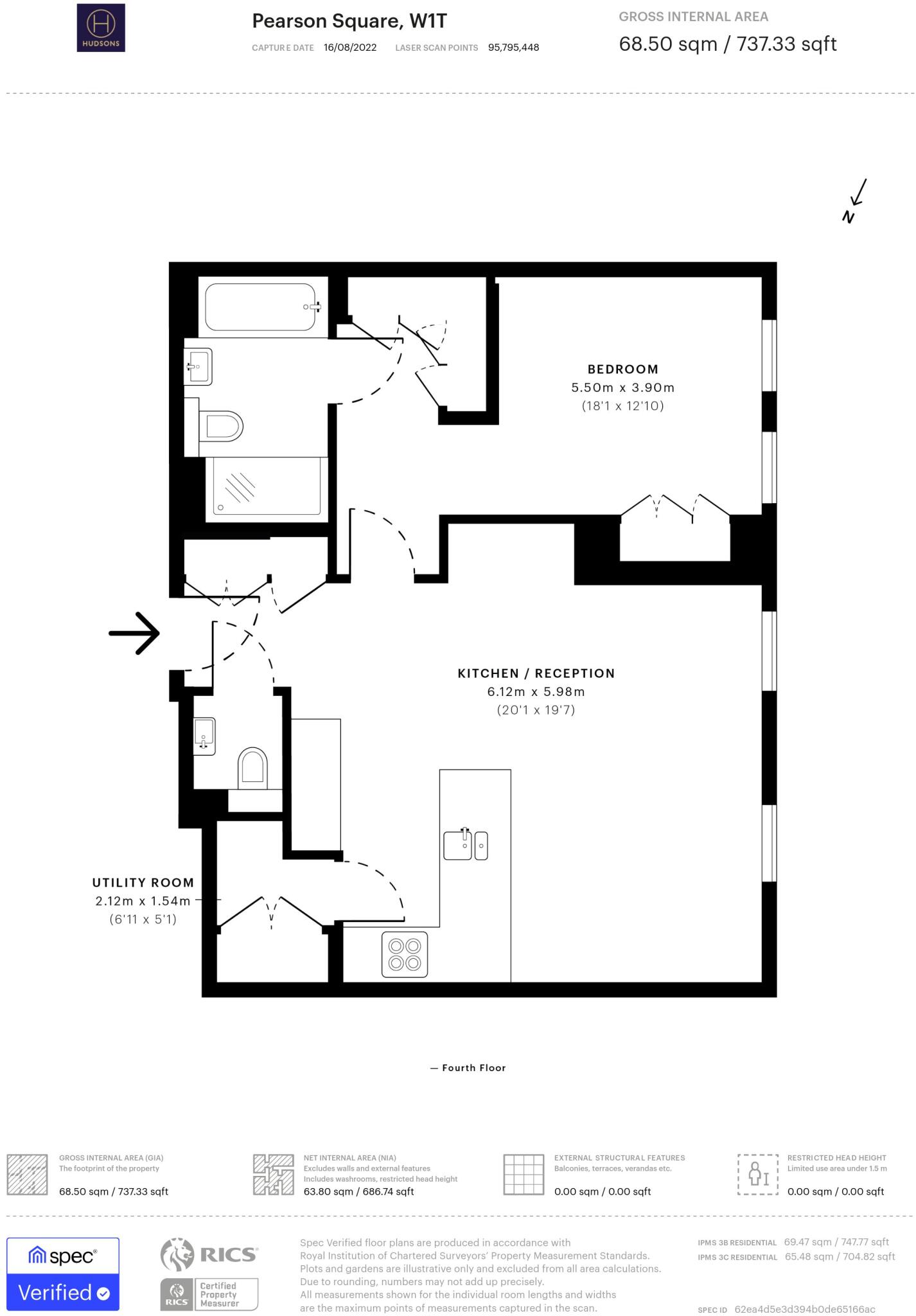 This one-bedroom apartment in Pearson Square, Fitzrovia, offers modern living in a prime central London location. The property benefits from well-maintained communal areas and is close to various amenities and transport links. While the apartment itself is in excellent condition, the price appears to be on the higher side compared to other properties in the area.