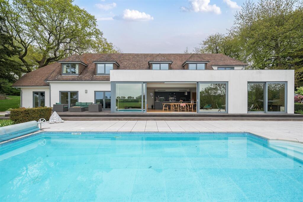 This is a detached property located in a desirable rural setting in Sevenoaks, Kent. The house features five bedrooms and appears to be in excellent condition, with modern interiors and well-maintained exteriors. The property benefits from a large plot of land, including a garden, swimming pool, stable blocks, and an outdoor riding area, making it ideal for equestrian enthusiasts or those seeking a country lifestyle. While the property is located in a rural area, it remains within a reasonable distance of local amenities, transportation, and schools. The price is high, but the inclusion of a swimming pool and stable blocks, would justify the price.