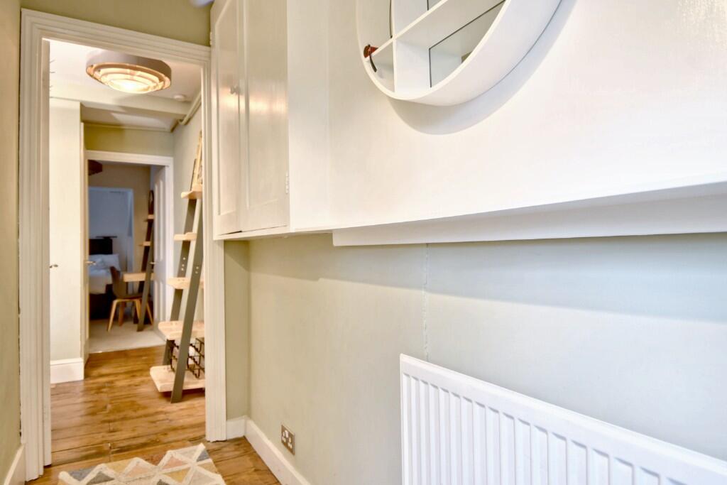 Ideally located almost opposite Hampstead Heath in this highly sought after residential area is this characterful one bedroom lower ground floor flat with a pretty south facing patio.