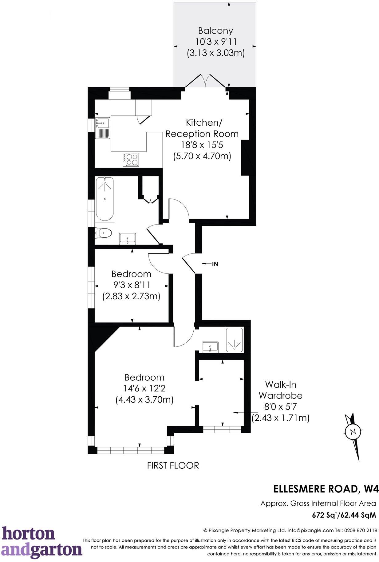 This is a two-bedroom flat located on Ellesmere Road in Chiswick. The property offers 694.54 sqft of living space and includes two bathrooms. The flat benefits from a balcony. The property appears to be in good condition, with modern fixtures and fittings in the kitchen and bathrooms. The location is desirable, with good access to local amenities, transport links, and schools. The price seems reasonable compared to the average price per square foot in the area.