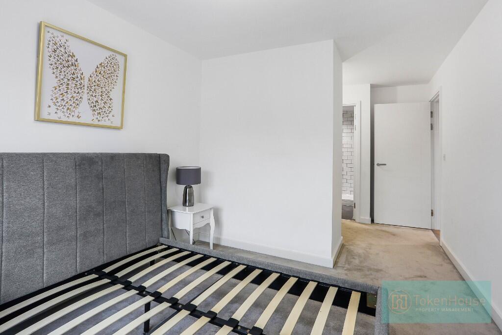 This modern two-bedroom apartment is in Fairbank House, Beaufort Park development. The property comes furnished and comprises of open plan kitchen and living area, two double bedrooms with built in wardrobe, family bathroom, en-suite bathroom, and private balcony.