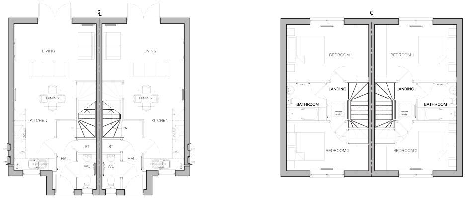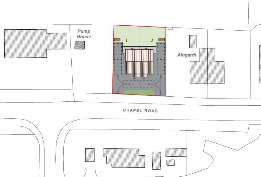 A building plot with outline planning permission for a pair of two bedroom semi-detached houses. In a village location with an open field view to the rear.