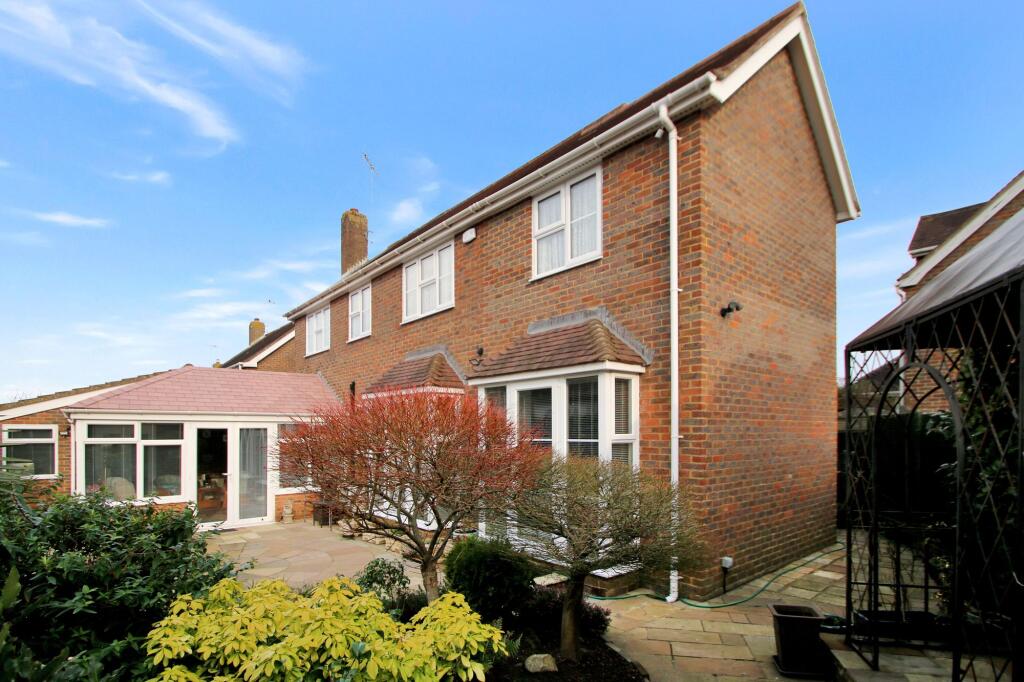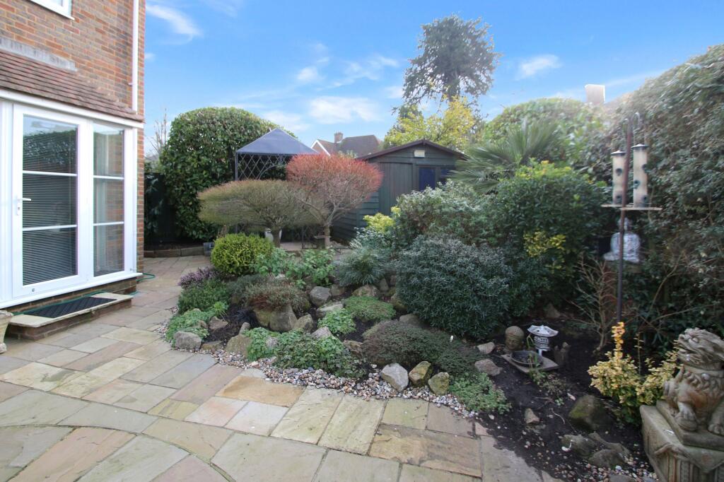 This property is a 3-bedroom, 2-bathroom detached house located in St. Benets Court, Tenterden, Kent. The list price is £570,000. The property has a sizeable garden and appears to be in good condition, with a modern kitchen and updated bathrooms. The property benefits from a detached garage. The average house price in the area is £278,019, with an average price per square foot of £315. This property is significantly larger than average at 1,785.73 sqft. Nearby comparable properties on St. Benets Court and St. Benets Way are listed between £315,000 and £595,000, suggesting the £570,000 asking price is within the range of similar properties in the immediate vicinity. However, further analysis of the specifics of these comparable properties (size, condition, features) would be needed to confirm this. The location benefits from relatively close proximity to several schools, including Tenterden Church of England Junior School and Tenterden Infant School, both rated ‘Good’ by Ofsted. Homewood School and Sixth Form Centre is also nearby, although its Ofsted rating is ‘Requires Improvement’. The proximity to these schools may be a significant positive factor for families. The property includes a well-maintained garden, adding to its overall appeal and value. The images show a paved patio area, mature shrubs, and a garden shed, indicating a relatively private and usable outdoor space. Based on the images provided, the property appears to be in good condition. The kitchen and bathrooms seem recently updated. There is no visible evidence of significant repairs or renovations needed.