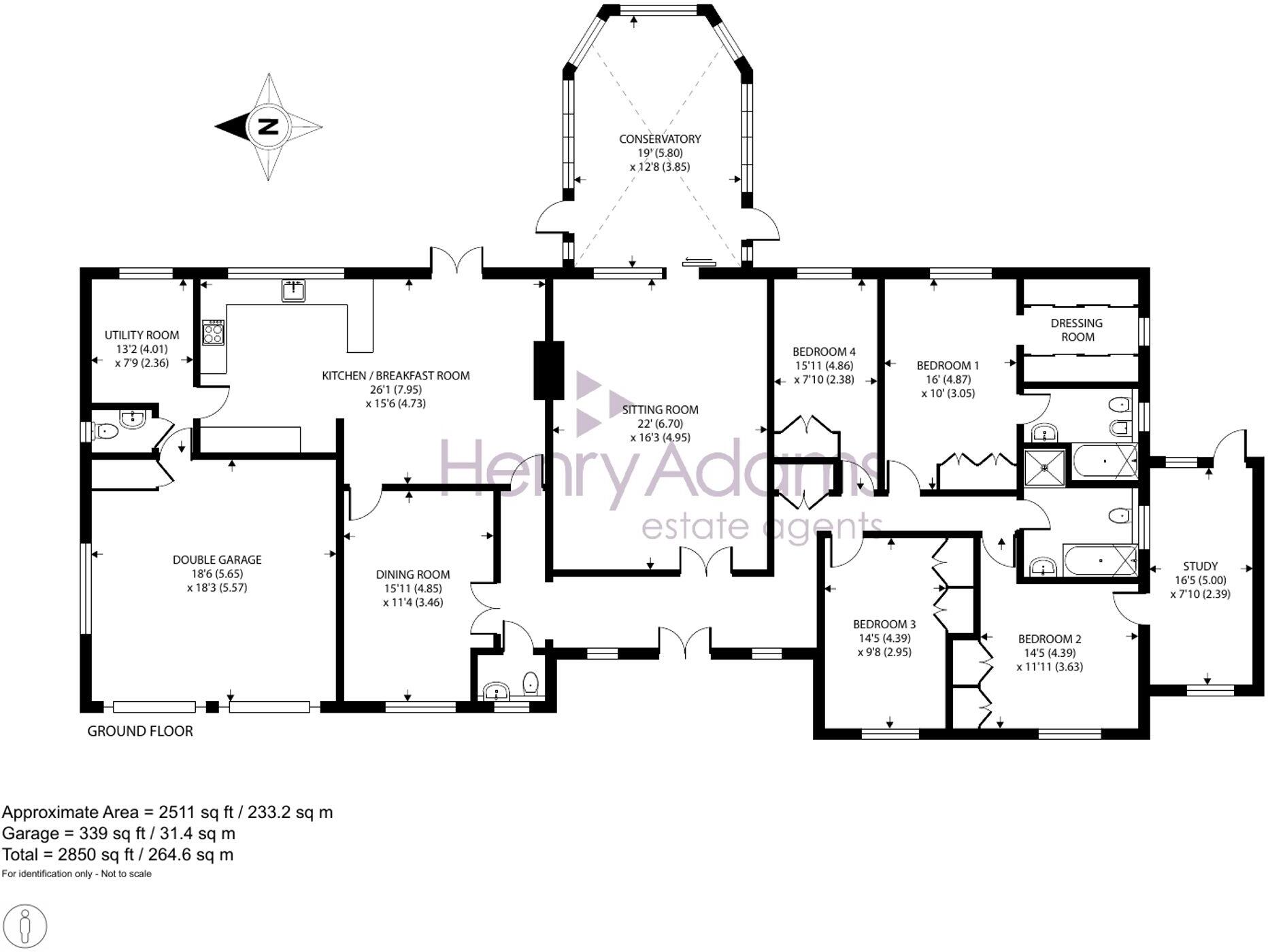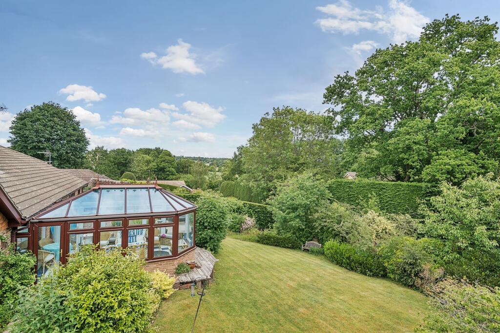 Impressive 4-bed bungalow in sought-after location with 2500+ sq ft. Integrated double garage, spacious rooms, conservatory, en-suite, mature gardens. No forward chain.