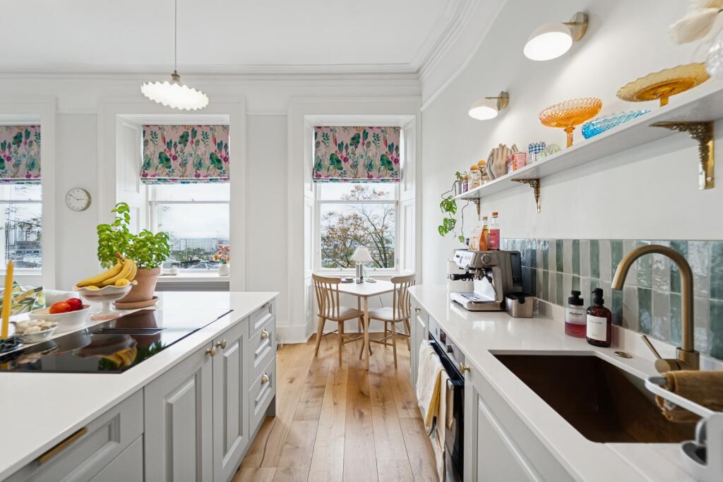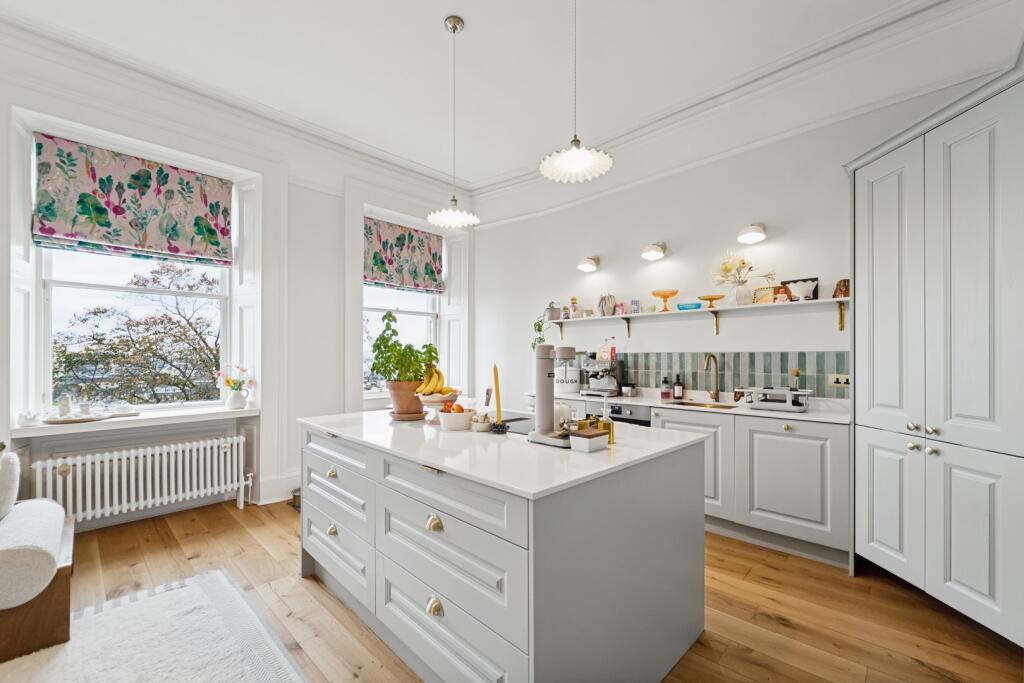This is a well-presented two-bedroom flat in the sought-after Hillhead area of Glasgow. The property boasts a modern interior, including a stylish bathroom and kitchen. While the asking price is above the local average, the condition and location contribute to its value. Access to a communal garden is a plus, although it’s not a private space. Nearby transportation links and schools make it an attractive option for a variety of buyers.
