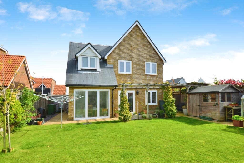 This three-bedroom, two-bathroom detached house in New Romney, Kent, presents as a well-maintained and modern property. The photographs showcase clean lines, updated interiors, and a modern kitchen and bathrooms. The house benefits from an open-plan living space with ample natural light, an important consideration for potential buyers. The outdoor space includes a neatly kept garden, providing a private area for relaxation and entertainment. The location in New Romney offers proximity to schools which are rated ‘Good’ by Ofsted, suggesting it’s suitable for families. The overall presentation suggests a move-in-ready home. However, without exact plot size or more detailed comparable property data in the immediate vicinity, a precise market value determination cannot be reached, although based on provided limited data the price seems sensible given the quality and location.