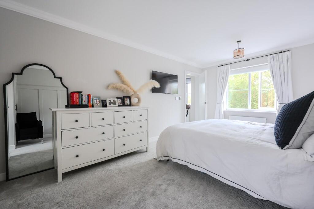 Home Estate Agents are very excited to offer for sale this beautifully maintained five bedroom detached family home, situated in a popular semi-rural location opposite a scenic woodland lake, yet still within easy reach of local amenities and major railway links. The accommodation is cle...