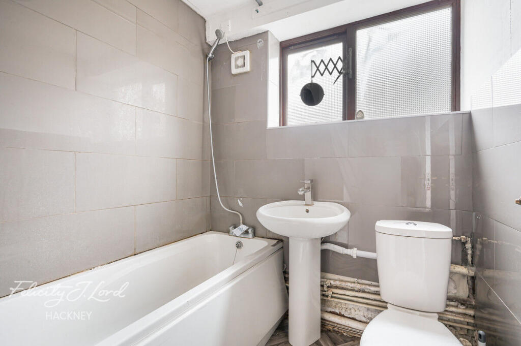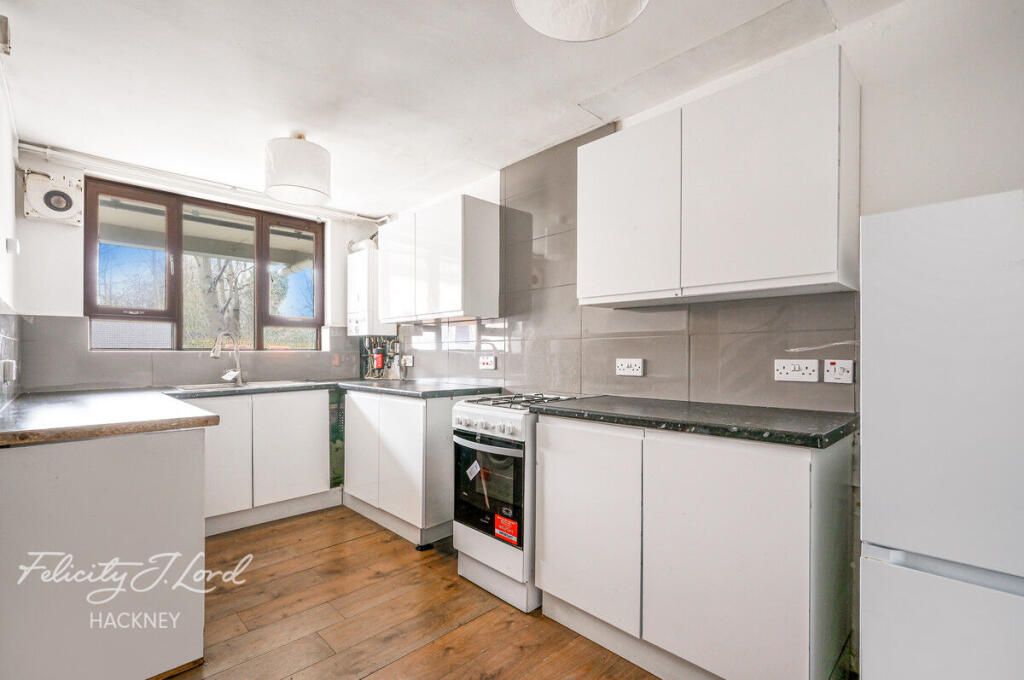 This three-bedroom flat is located in Hackney, East London, and is currently listed at £445,000. The property benefits from a small, enclosed rear garden. While the flat itself appears to be in reasonable condition, requiring only minor cosmetic improvements, the overall presentation suggests a need for some modernisation. The average price per square foot in the area is £771, while this property is listed at a lower price per square foot. However, this should be considered in light of the property needing some modernisation. The location is convenient, with several primary schools within a short distance, and several overground stations within approximately a mile radius. This makes the property suitable for families and commuters.