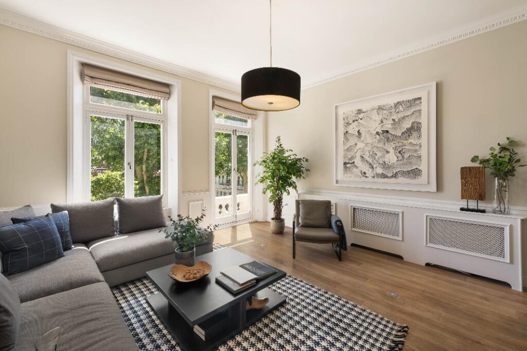 A contemporary two bedroom, two bathroom, second floor flat (with lift) in a quietly located building on Earls Court Square with stunning garden views and access. With a south-facing reception, high ceilings and floor to ceiling windows the flat benefits from an abundance of natural light.