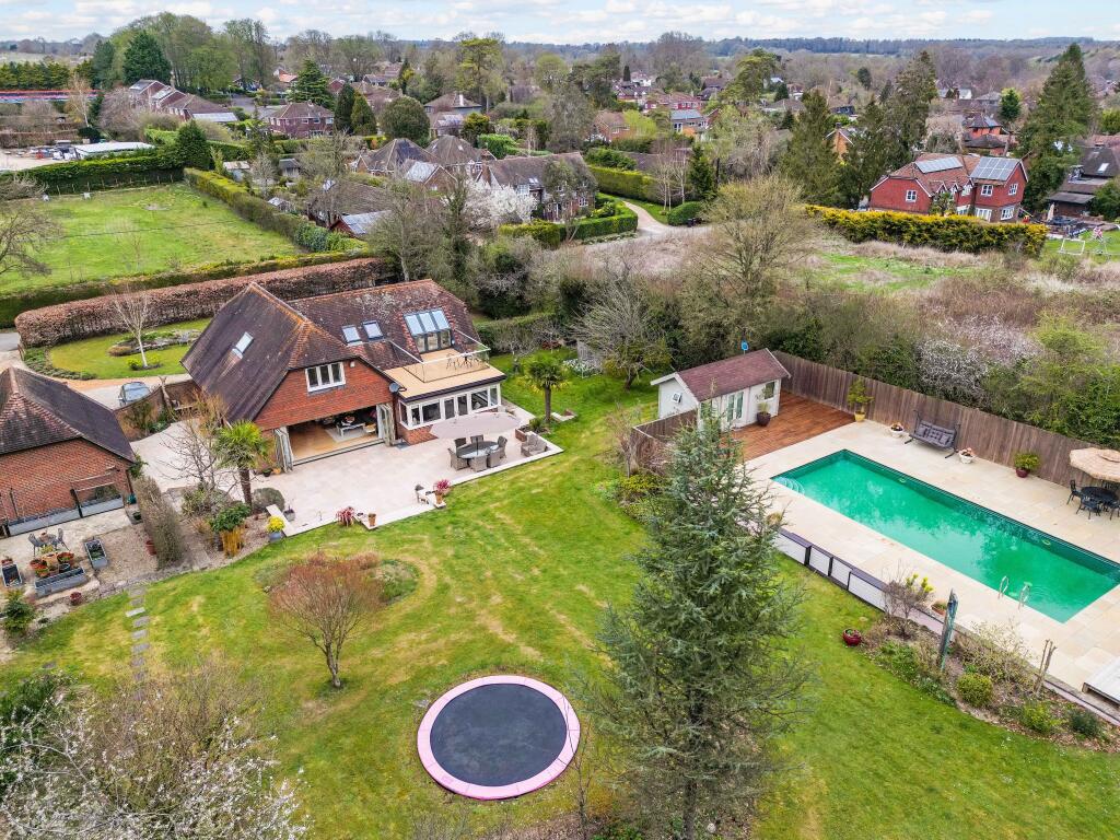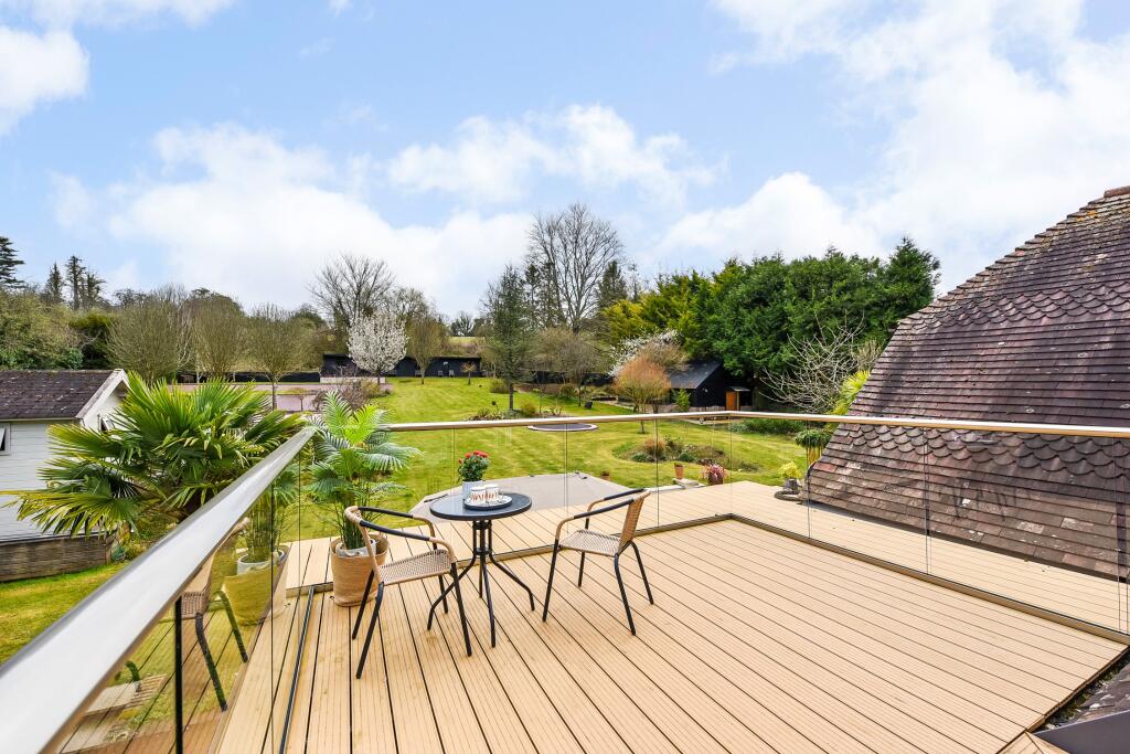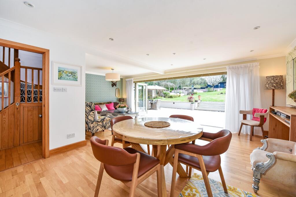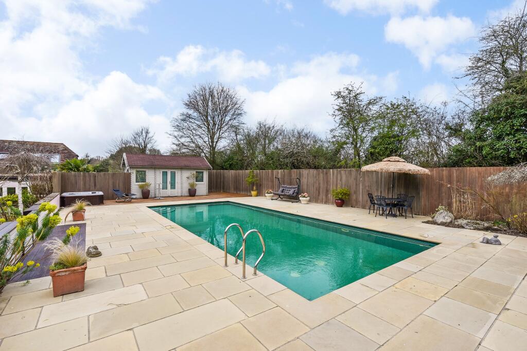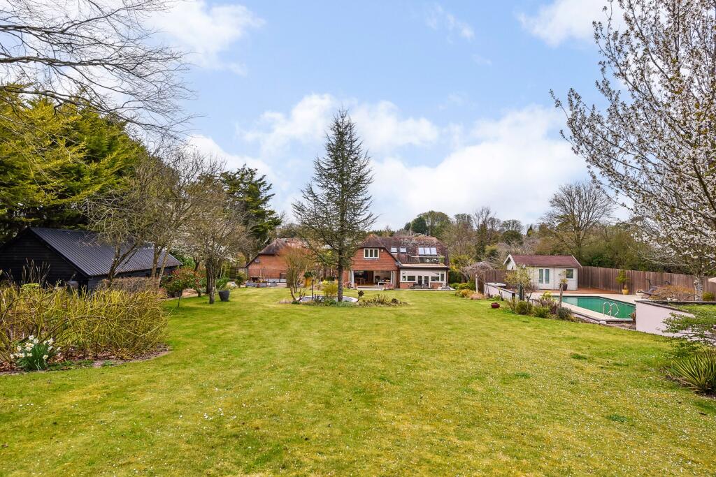 This impressive home and its glorious grounds offer quite the succession of wow moments. Situated on one of the largest residential plots in Littleton (1.1 acres), Applemead is an immaculate and homely property, with four bedrooms, three reception rooms, roof terrace, social barn, swimming pool a...