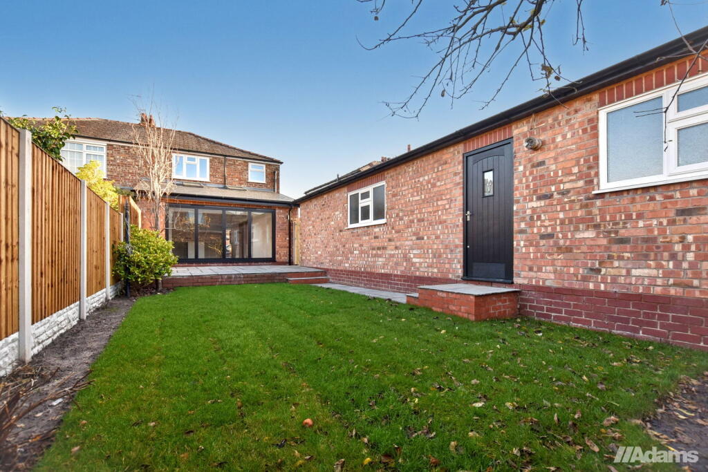 This is a renovated semi-detached property on Windsor Drive, Grappenhall. The house features a modern kitchen and bathroom, suggesting recent updates. It has a garden with a patio. The property is located in a residential area with access to local amenities and schools. The asking price is slightly above the average for the area, reflecting the renovations.