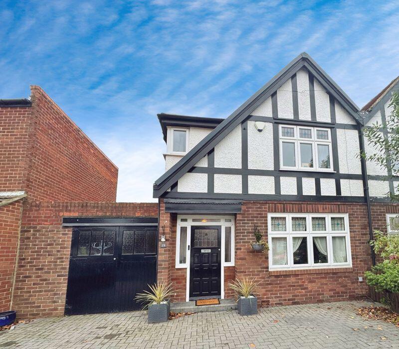 This charming 1930's mock Tudor semi captures all the warmth and character of its era, combining traditional features with a welcoming homely feel. With fabulous kerb appeal and a substantial, South-Westerly rear garden with elevated, decked patio, front double width driveway and garage, this h...