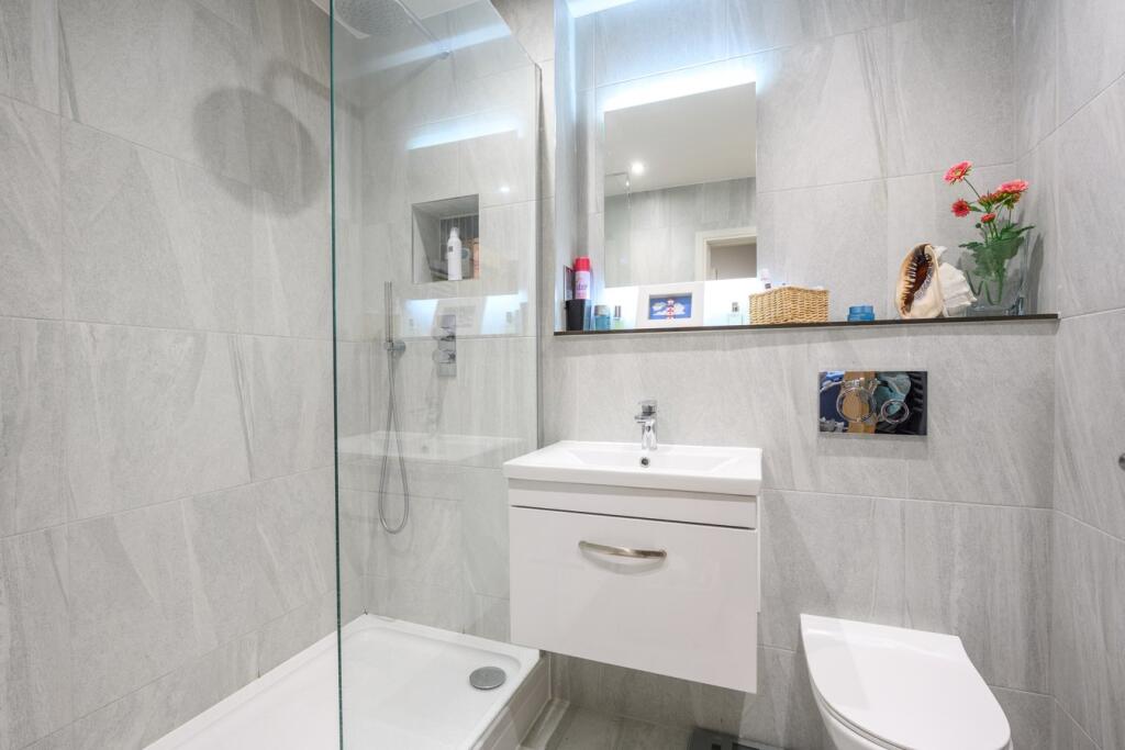 This property is a modern two bedroom apartment located in Walton-on-Thames, Surrey. Based on the images provided, the property appears to be newly built or recently renovated to a high standard. The apartment benefits from a modern kitchen and bathroom, and a spacious living area. The location is good, with nearby transportation links and schools. However, the lack of information on the property size and plot size makes it difficult to assess the value for money. The list price of £399,950 is significantly lower than the average price for the area (£652,035), which could indicate good value for money, but more information is needed to confirm this.