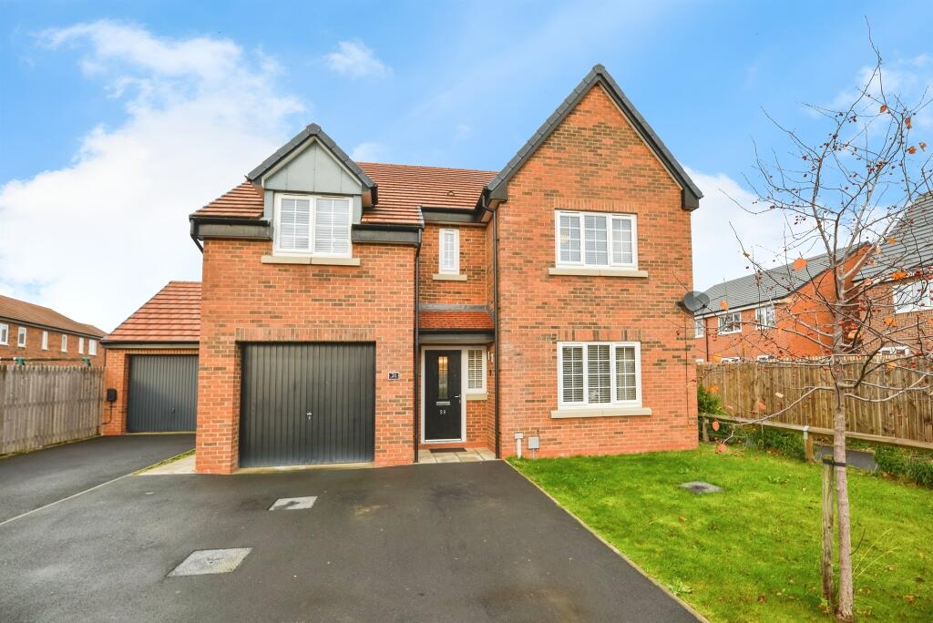 Stunning four-bedroom detached home on a generous plot in a quiet Ingleby Barwick cul-de-sac. Features stylish interiors, spacious kitchen diner, two en-suites, fitted wardrobes, garage, driveway and a private lawned garden with patio. Early viewing recommended