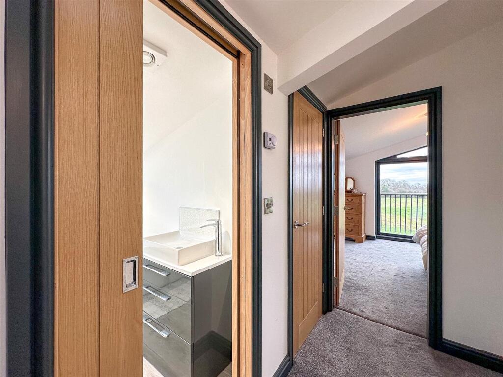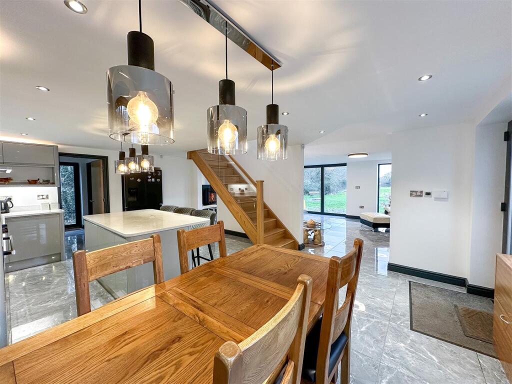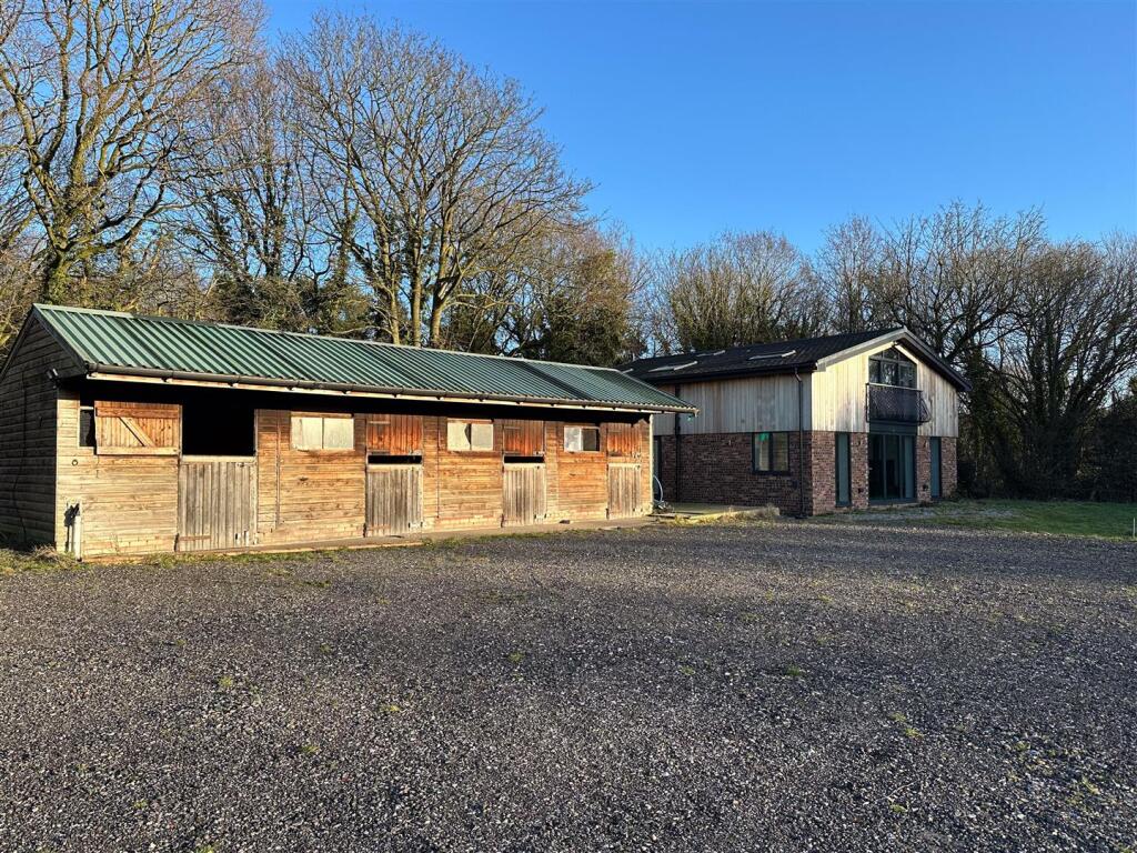 This property is a barn conversion located in Lamberts Lane, Congleton. The property is modern and has been finished to a high standard. It benefits from a large plot of land, which includes stables and a pond. The location is rural, offering peace and quiet, but is within reasonable distance of Congleton town centre and transport links. The asking price is significantly higher than the average house price in the area, but this is likely due to the size of the plot and the unique nature of the property as a barn conversion. The property appears to be in excellent condition.