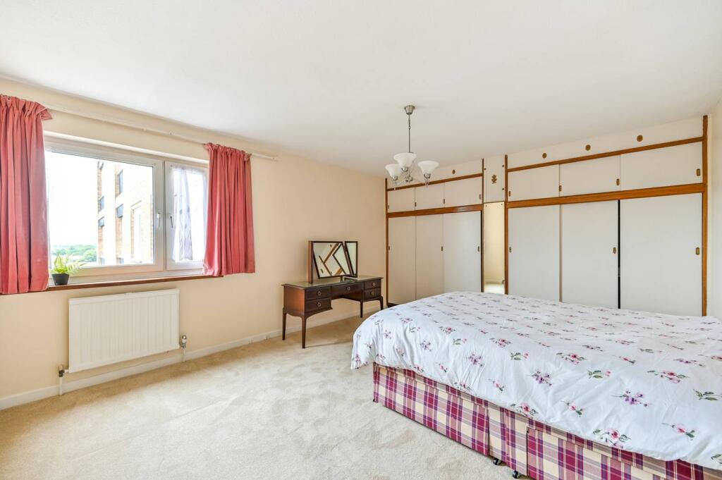 LONG LET. Enjoying stunning views over the river Thames and towards Hampton Court Palace, this charming and spacious 2-bedroom flat offers modern interiors, ample storage, and residents parking.