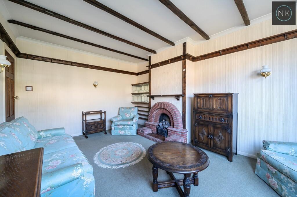 The property itself appears to be in reasonable structural condition, based on the provided photographs. However, it is clear that a significant modernisation and renovation effort would be needed. The interior decor, kitchen, and bathroom fixtures appear dated, suggesting that prospective buyers should factor in potential renovation costs. The house shows character with exposed beams and a brick fireplace in what appears to be a living area. There is also a conservatory. The outside is also reasonable and includes what appears to be a small patio area and a reasonably sized back garden.