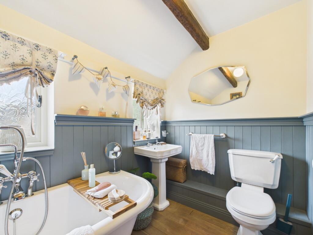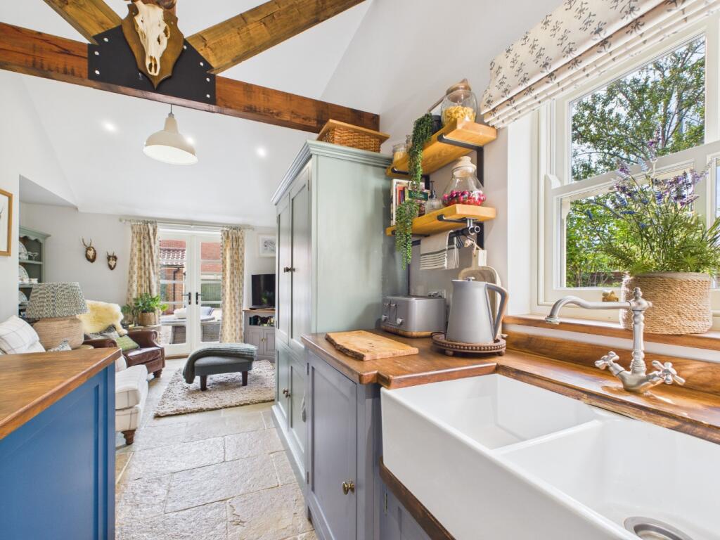 This is a detached property in Brandesburton, East Riding of Yorkshire, featuring four bedrooms and two bathrooms. The house is presented in good condition, with a modern kitchen and bathrooms, and retains some period features such as exposed beams. It benefits from a garden, a garage, and off-street parking. The property is located within walking distance of Brandesburton Primary School. The asking price is a little high compared to the average for the area, but the condition and features of the property may justify the price for the right buyer. The property also benefits from a study, which is ideal for working from home.