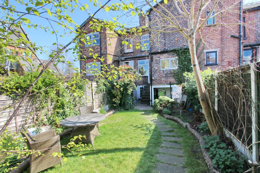 The property is located in the desirable Prestwich area of Manchester, close to good schools and transport links. The interior shows a mix of modern updates and areas requiring significant renovation, particularly the basement which shows signs of potential damp. The presence of a garden is a positive. The list price is higher than the area average and seems somewhat high considering the required renovation work.