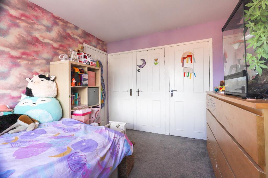 This semi-detached property on Hadfield Close in Connah’s Quay offers three bedrooms and one bathroom. The interior appears to be in good condition, with modern finishes in the living areas and bedrooms. The kitchen and bathroom could benefit from some updates. The property includes a garden with a shed, providing outdoor space. While the square footage is below the local average, the asking price of £190,000 reflects this, making it a potentially attractive option for first-time buyers or small families. Nearby schools and transportation links add to the property’s appeal.
