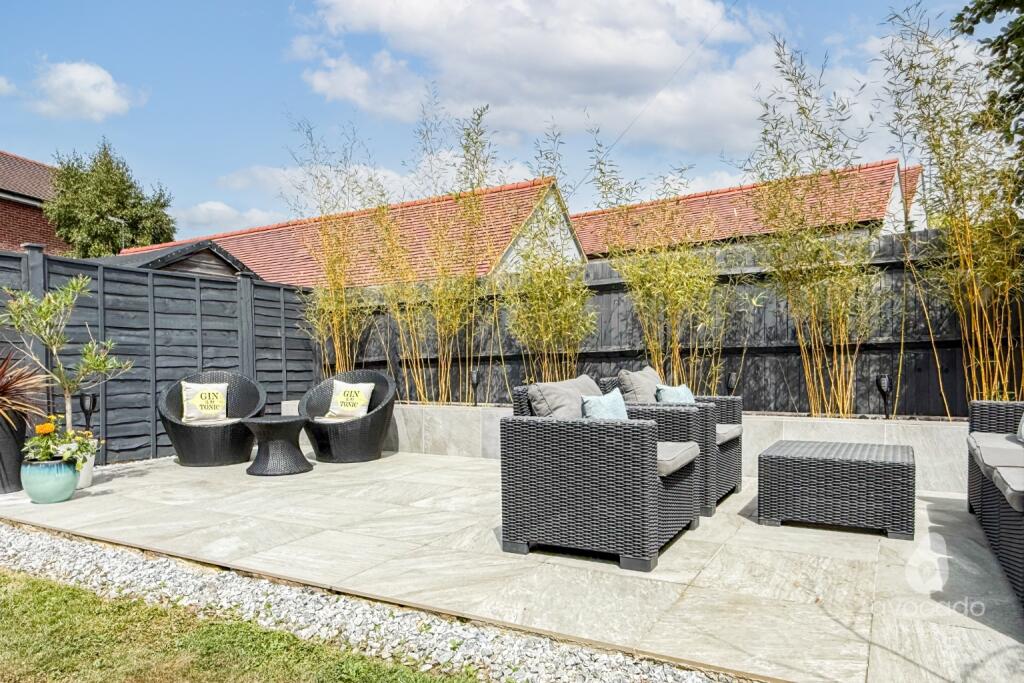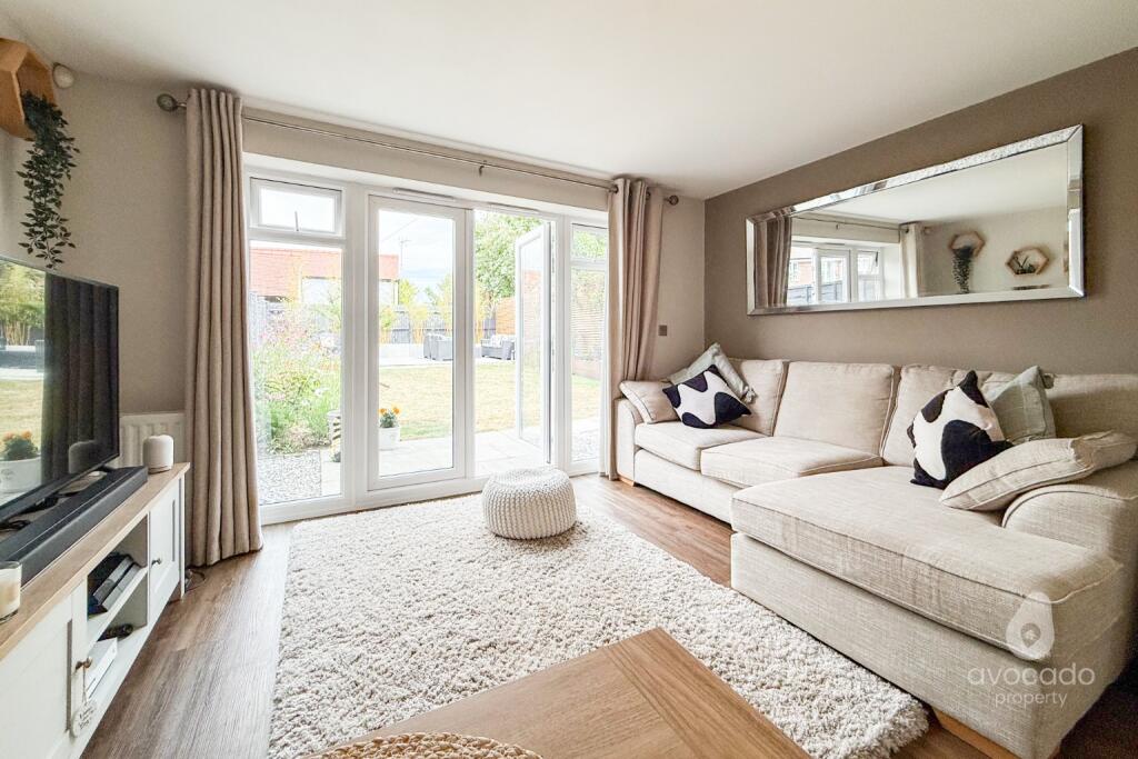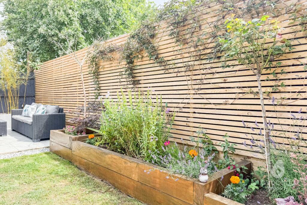 ** Closed chain**Stylish two-bed end terrace with immaculate finish, open-plan living, fitted wardrobes, and a downstairs loo. Huge landscaped garden, biggest for this style! Two side-by-side parking spaces and in a fab spot.