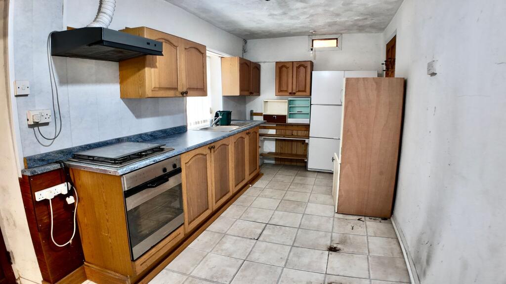 This is a four-bedroom house in Crosskeys, Caerphilly, listed by Flying Keys estate agents. The property is in need of renovation. The house has a garden. The property is located close to local schools and transportation links, with Crosskeys train station less than a kilometer away. The asking price is £240,000.
