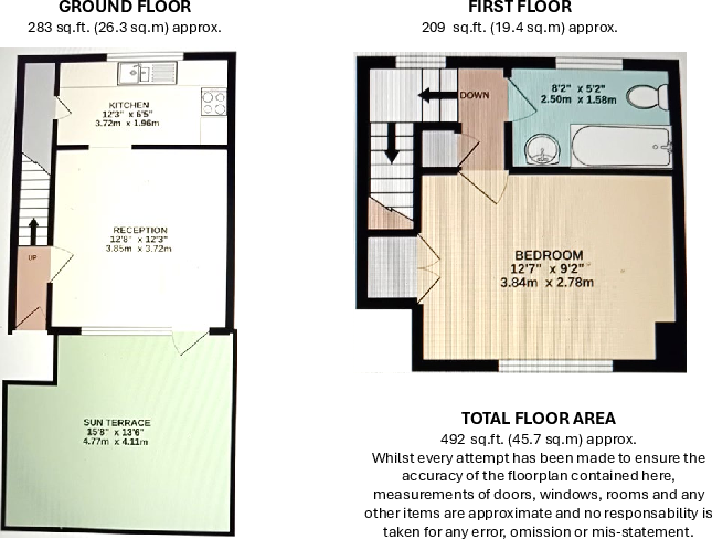 This bright and spacious maisonette comprises of a double-bedroom, a tiled bathroom, a kitchen and a generously-sized reception room which opens out onto a huge terrace!