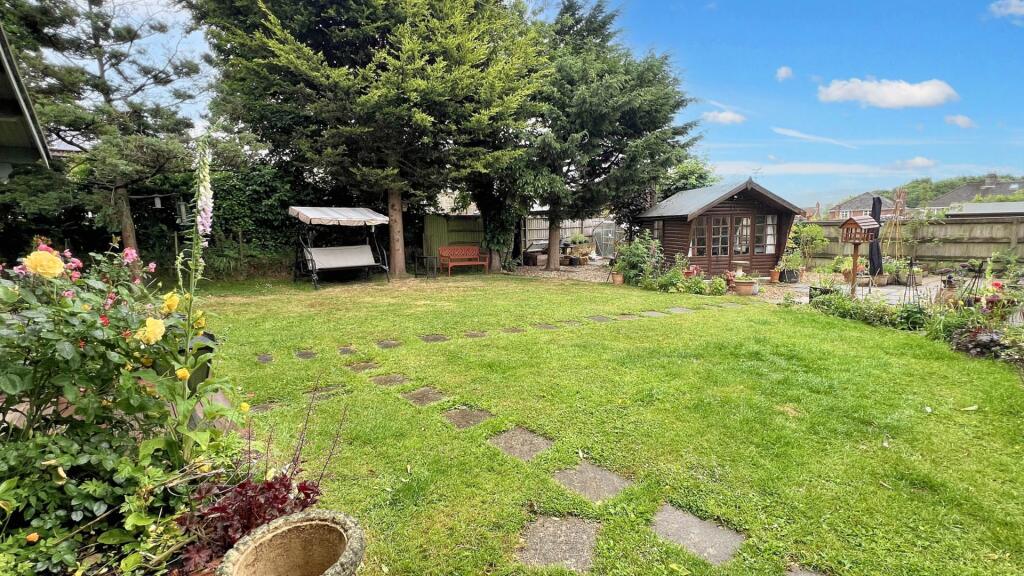 Extended family house with four double bedrooms upstairs, additional downstairs bedroom, two shower rooms and en-suite bathroom. Single garage, plenty of driveway parking to the front and garden with summer houses to the rear. Large living room diner in addition to separate dining room.