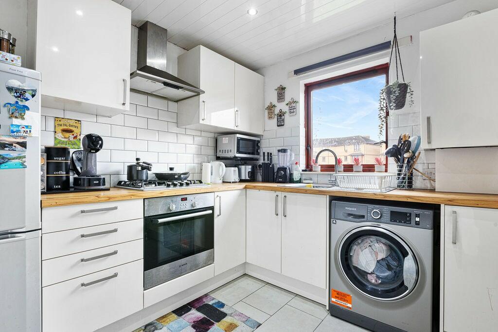 This two-bedroom flat is located in Millstream Court, Paisley, Renfrewshire. The property is a flat, and the provided images show a well-maintained interior. The kitchen and bathroom appear modern and clean. The living area is spacious and has a good amount of natural light. While the property itself appears to be in good condition, the lack of plot size information means we cannot comment on the availability of outdoor space. The list price is £109,995. Nearby comparable properties range significantly in price, from £57,500 to £198,000. This wide range makes it difficult to definitively assess the value of the subject property without more detailed information on the size and features of comparable properties. The proximity to several train stations (Paisley Canal, Paisley Gilmour Street, Hawkhead, Paisley St James, and Barrhead) is a positive factor influencing location desirability. However, the absence of information regarding nearby schools impacts the overall location assessment.