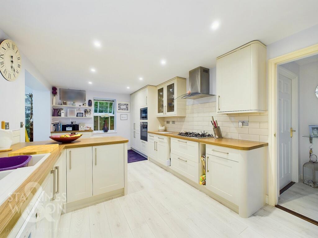 This four-bedroom, two-bathroom detached house in Old Catton, Norwich, presents a compelling proposition for prospective buyers. The property benefits from a substantial extension, most notably a well-designed conservatory that increases the living space significantly. The kitchen has also undergone a recent upgrade, showcasing modern appliances and ample cabinetry. This updated kitchen, combined with the conservatory, enhances the family-friendly aspects and enhances the property’s overall value. The overall condition of the house, as presented in the photographs, is generally excellent, with a clean, modern aesthetic throughout. The bedrooms are well-proportioned and each enjoys natural light. The house features additional advantages like a garage and a pleasant garden, which would be desirable for a family seeking more outdoor living space. This area is known for its good schools, which is another crucial factor influencing potential buyers. While no precise plot size is indicated, the garden does appear to be of a considerable size compared to similar-sized houses in the region. Finally, the location in Old Catton, a sought-after area of Norwich, positions this property within a quiet yet conveniently located neighbourhood. The proximity to Norwich city centre and nearby amenities is certainly a positive attribute. Overall, this house is a solid and well-presented family home and should find a willing purchaser at the asking price provided the market conditions are right.