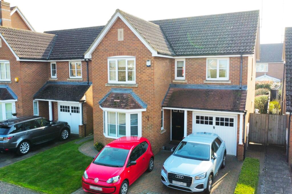 GUIDE PRICE £650,000 - £665,000 - Located in a quiet cul-de-sac, this beautifully presented four-bedroom detached home offers spacious, modern family living. The property features driveway parking for two cars, an integral garage, and a private south/southwest-facing garden. Inside, a br...