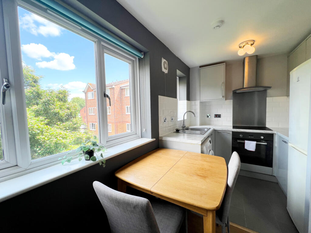 Perky one bedroom apartment within a quiet, well groomed cul-de-sac. You get a cosy and sunny reception room with dual aspect windows, a kitchen with modern clean lines and built-in cooking appliances, a well appointed contemporary bathroom and a double bedroom with built-in storage. Excellent tr...